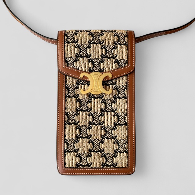CELINE セリーヌ トリオンフ モバイルポーチ タン ゴールド
