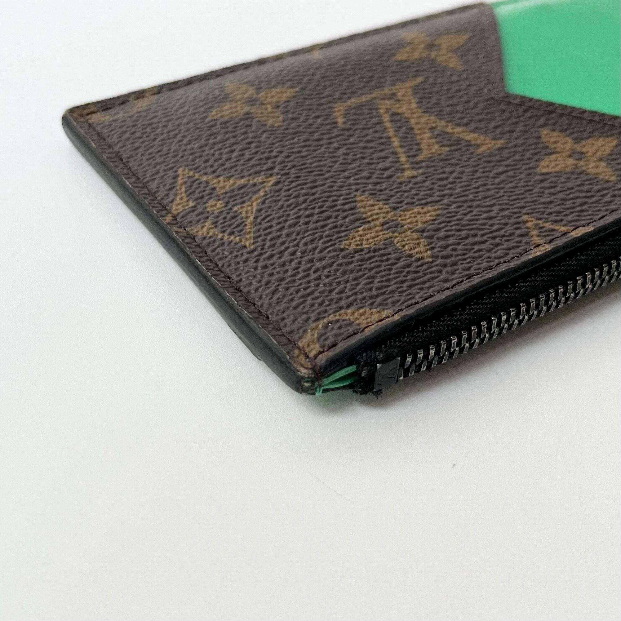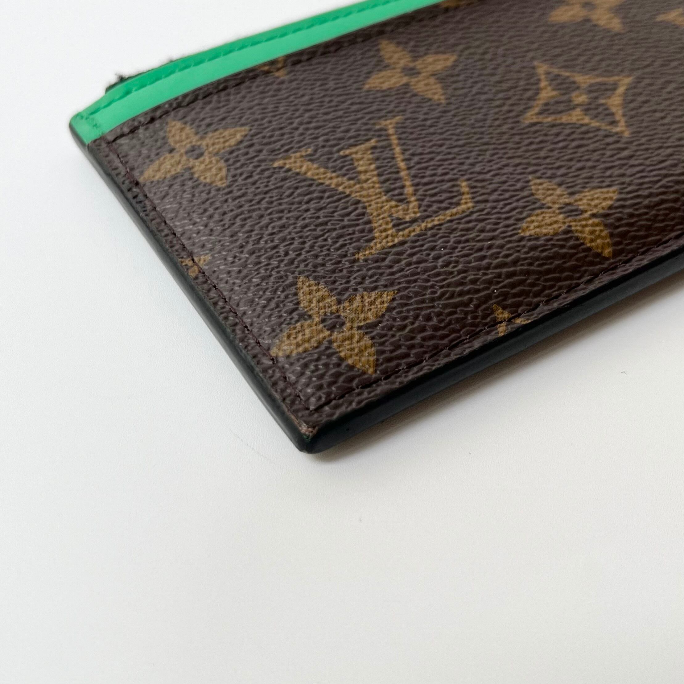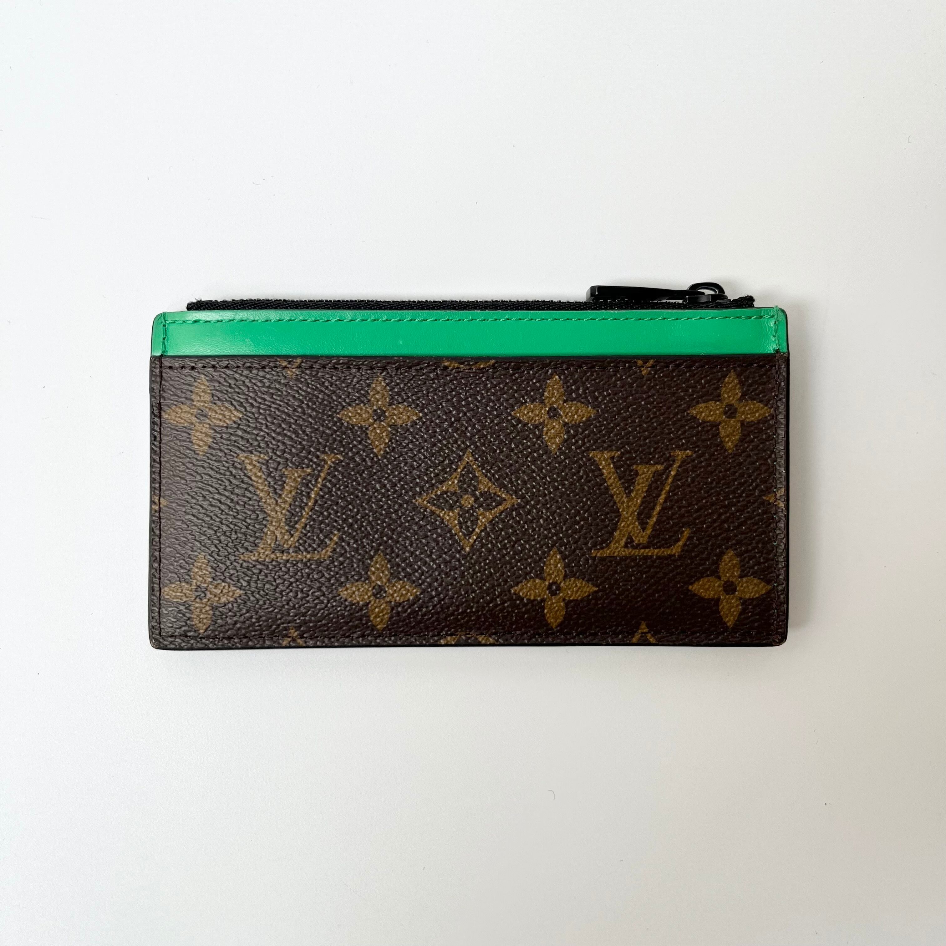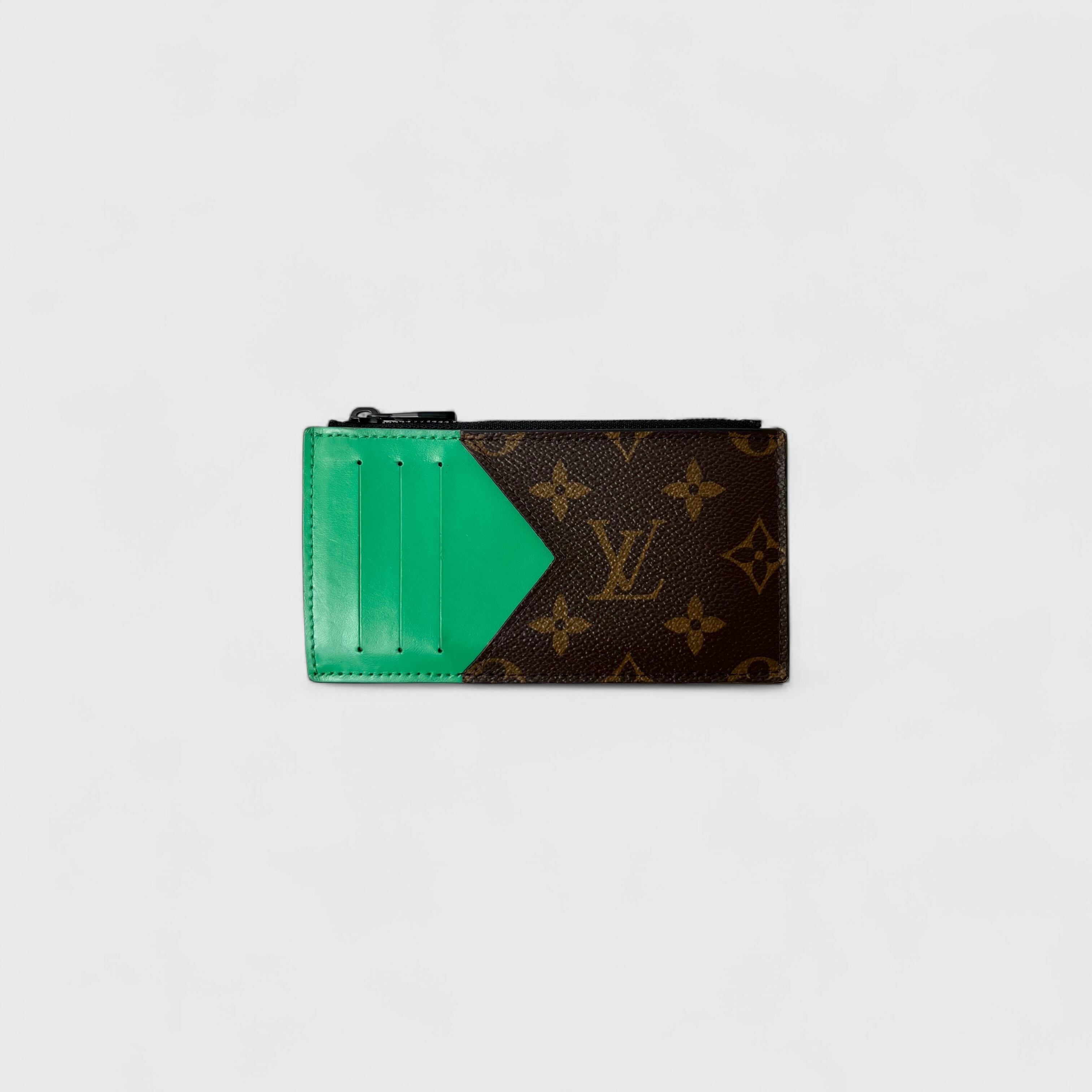 トレンドのグリーンの差し色が入った、LOUIS VUITTONのコインカードホルダーになります。