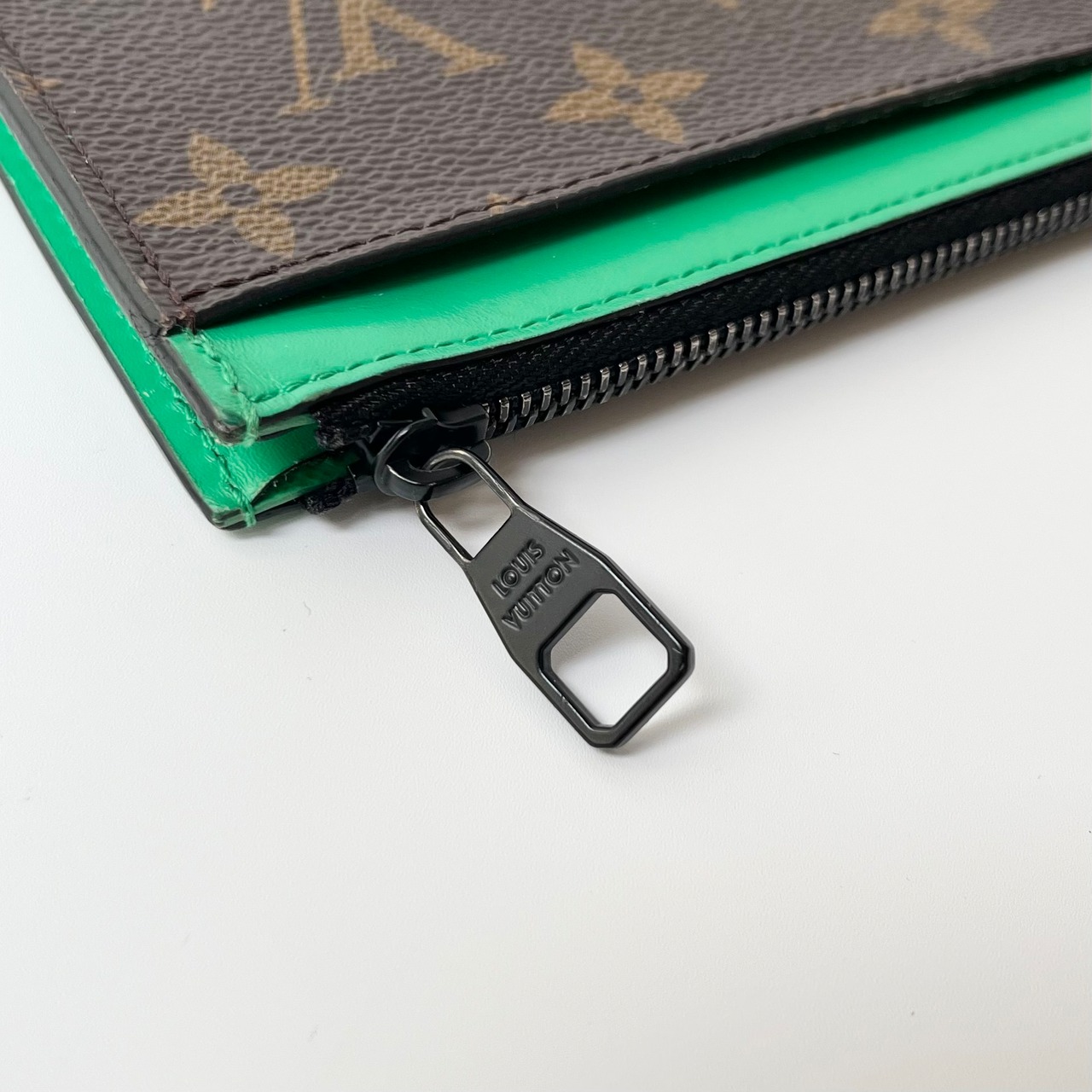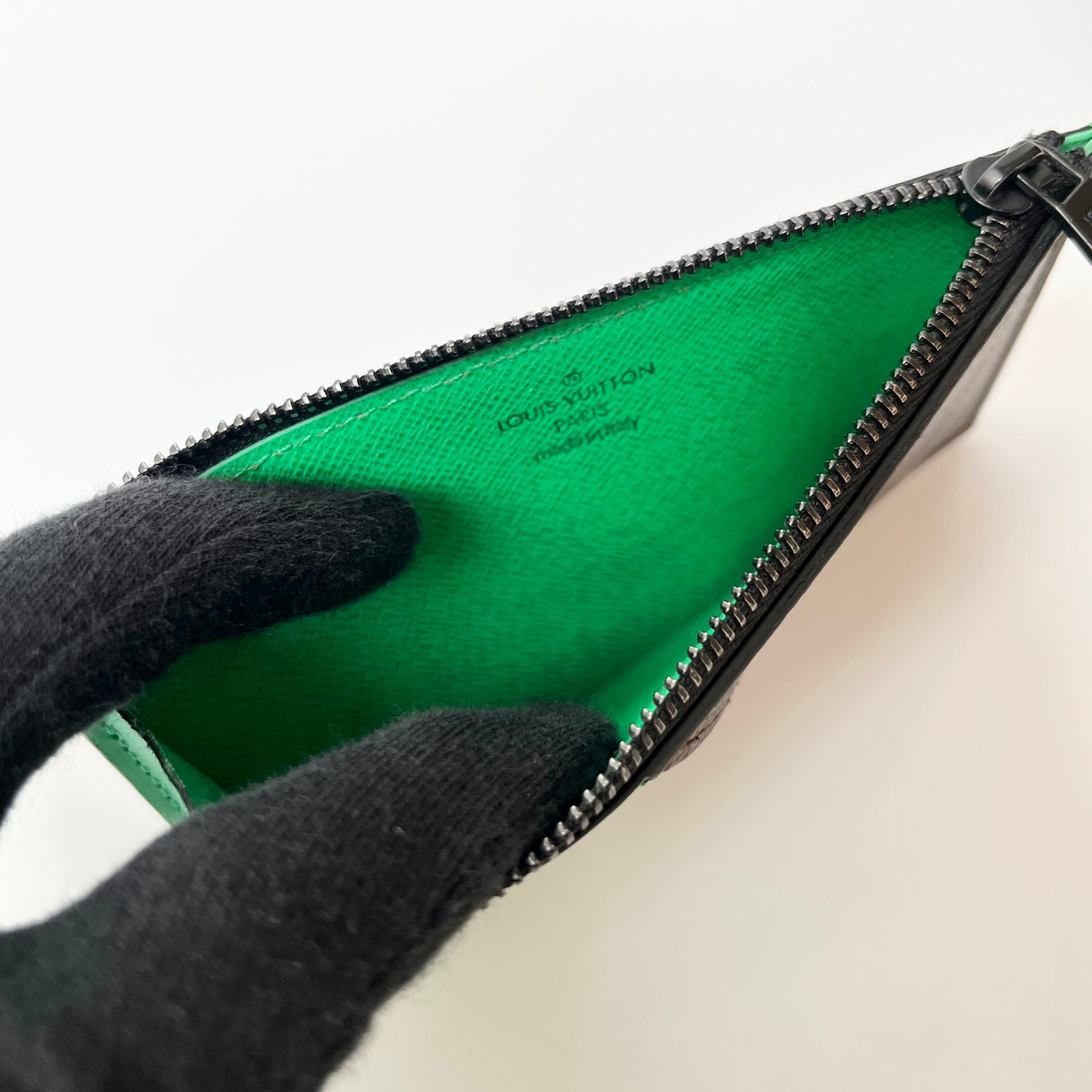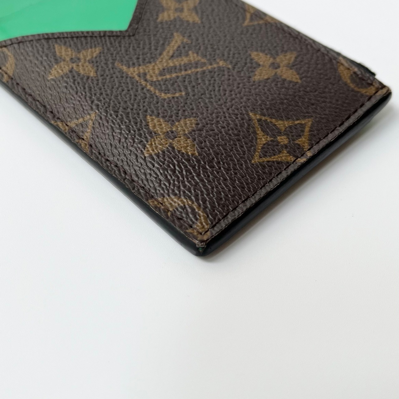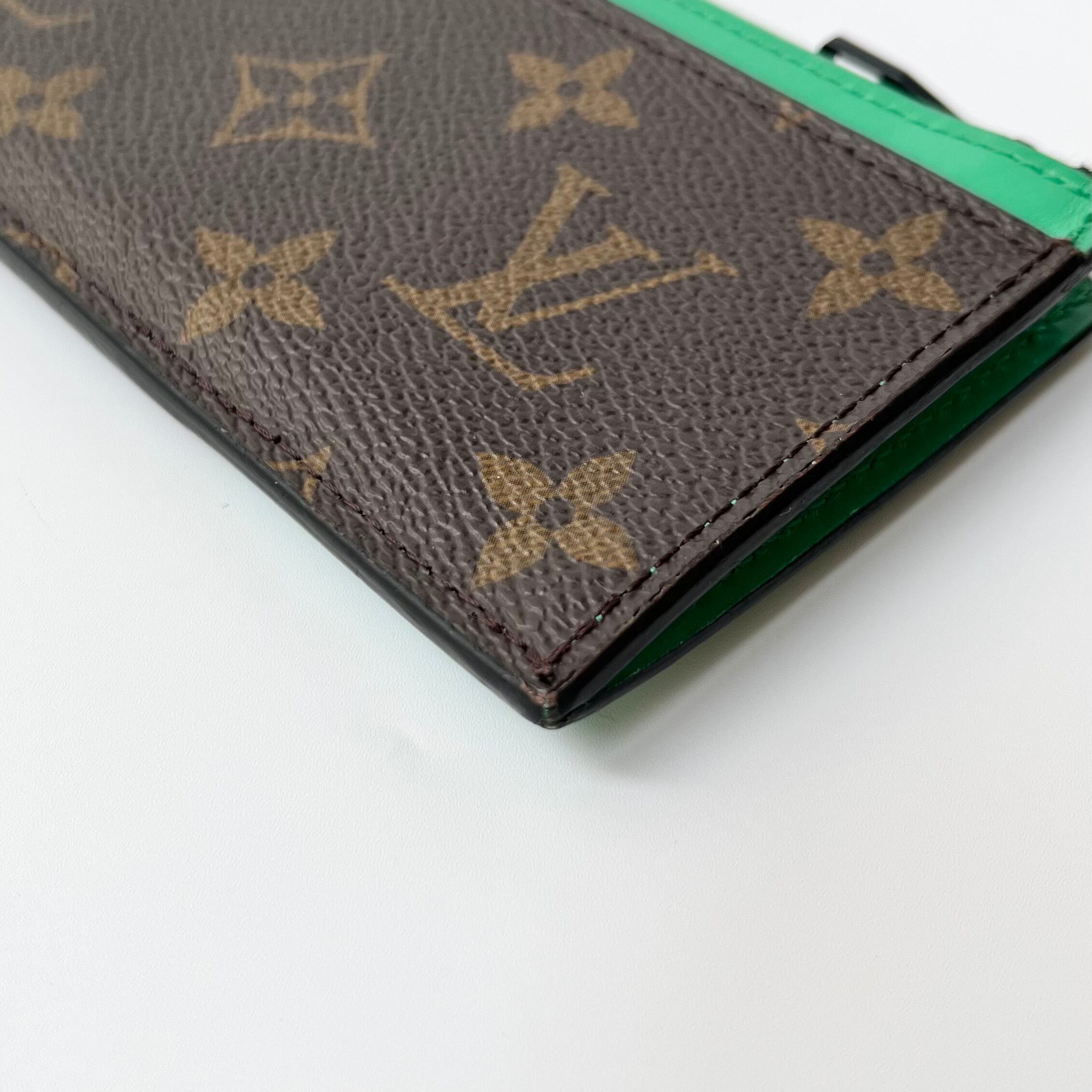 トレンドのグリーンの差し色が入った、LOUIS VUITTONのコインカードホルダーになります。