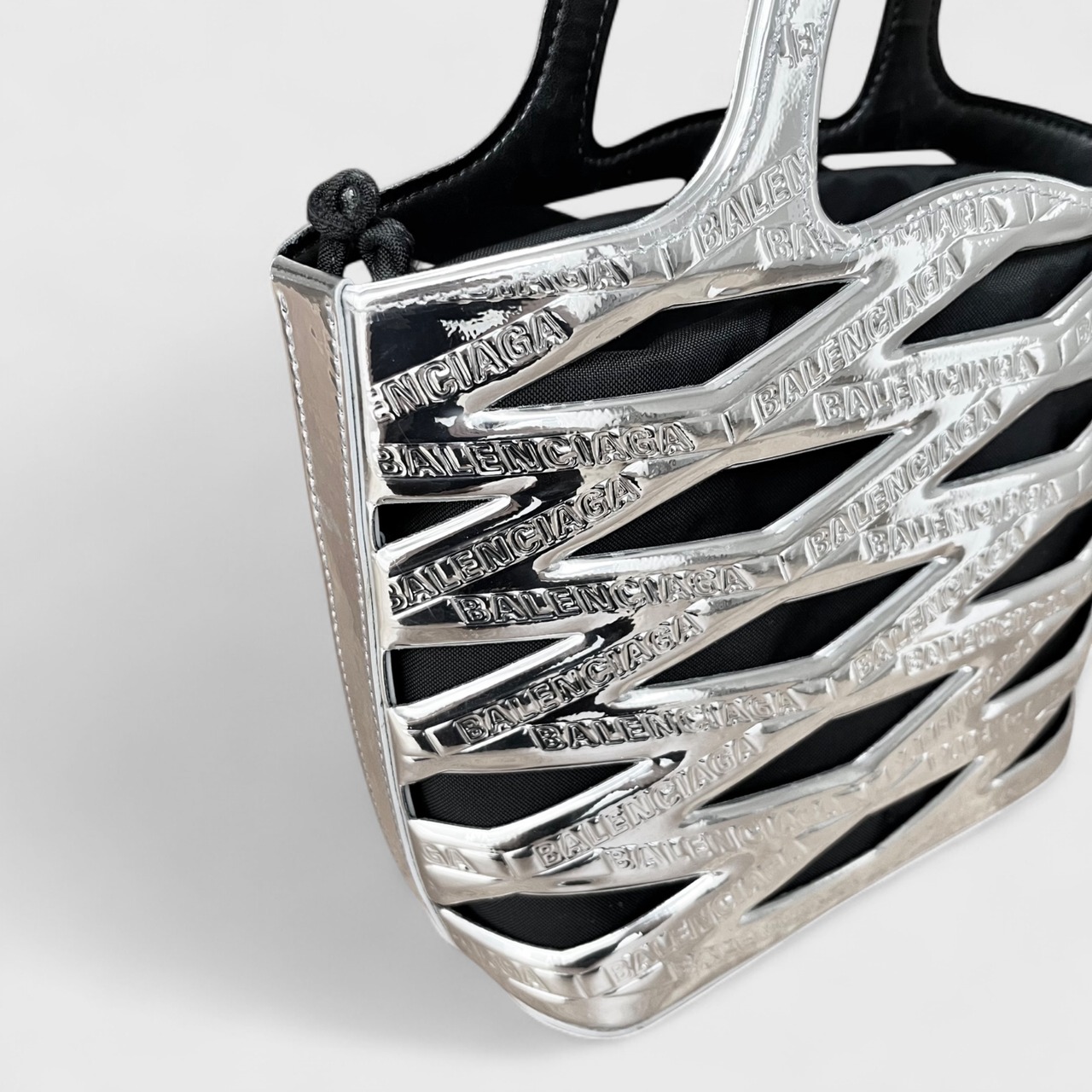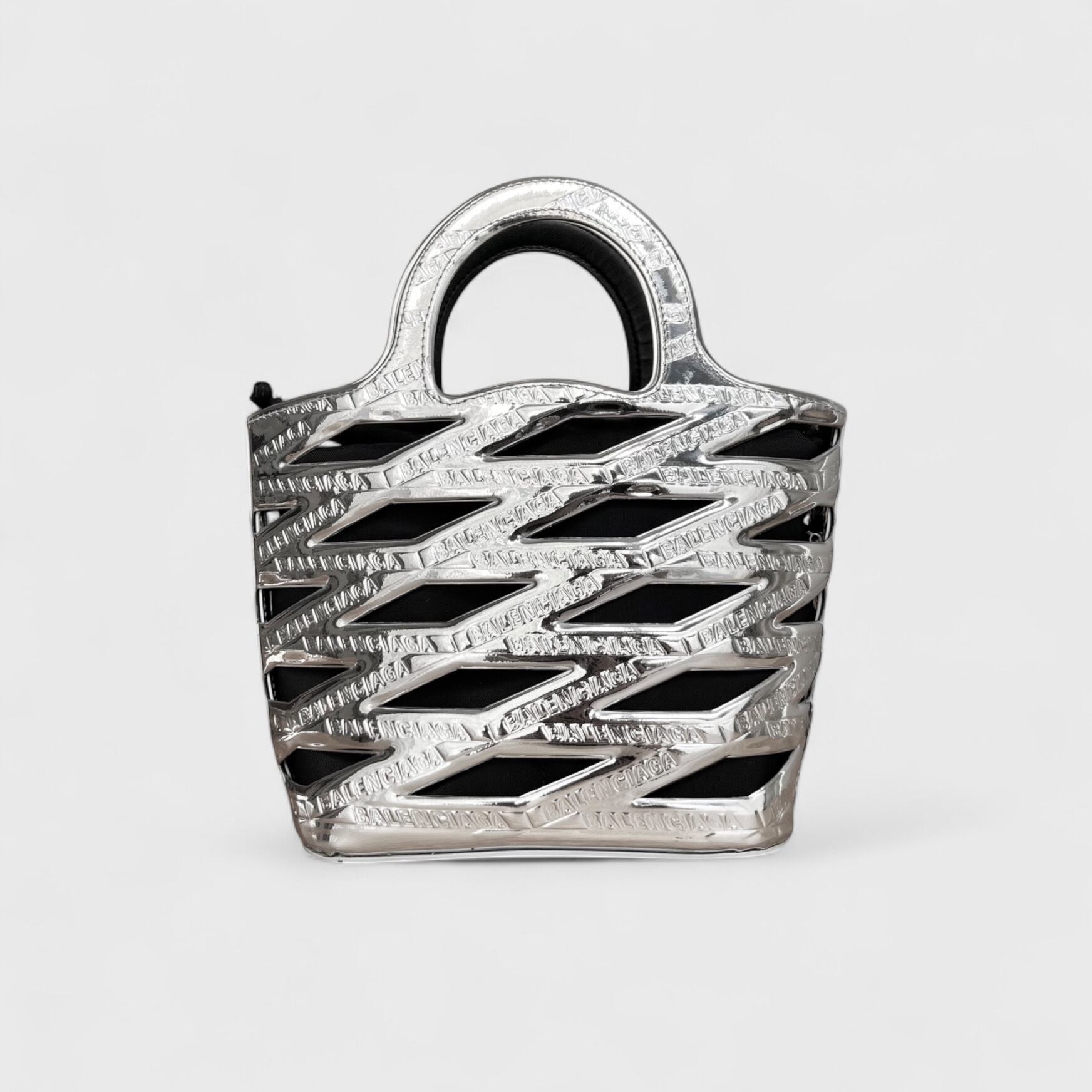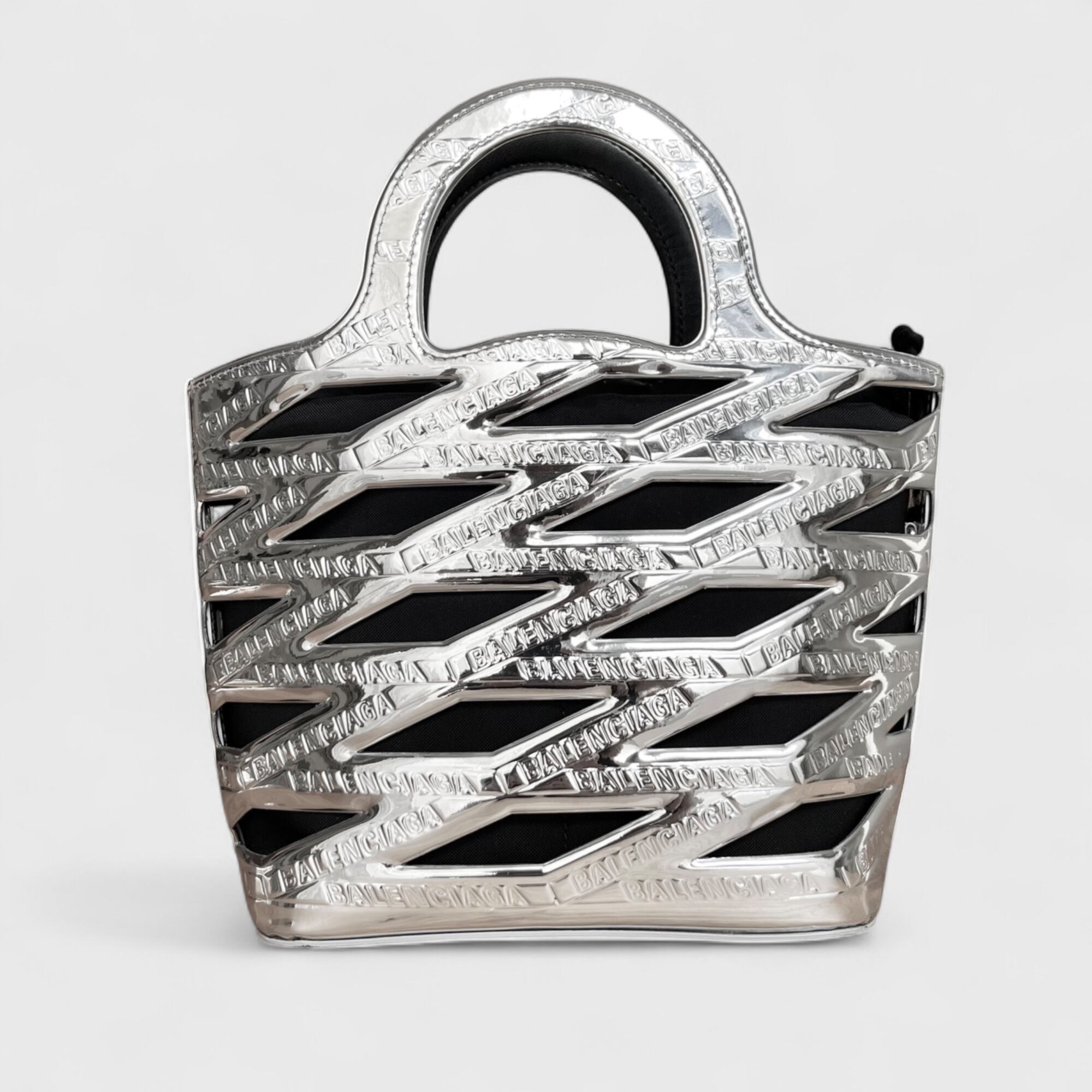 かごバッグをモダンに解釈したネオバスケット、シルバーカラーのお品になります。