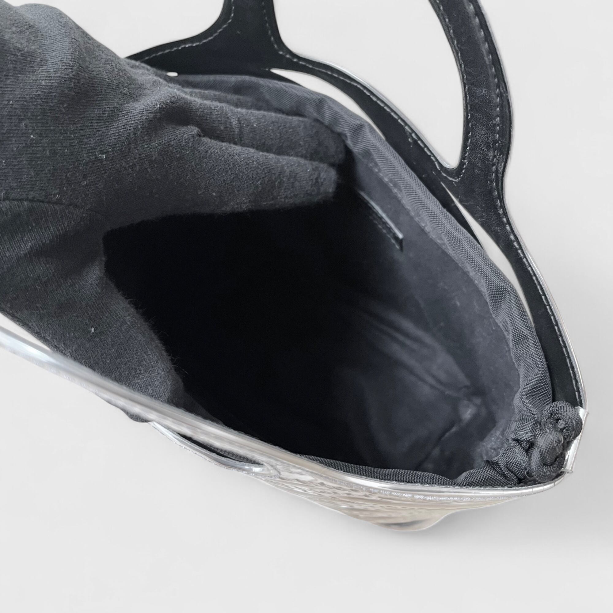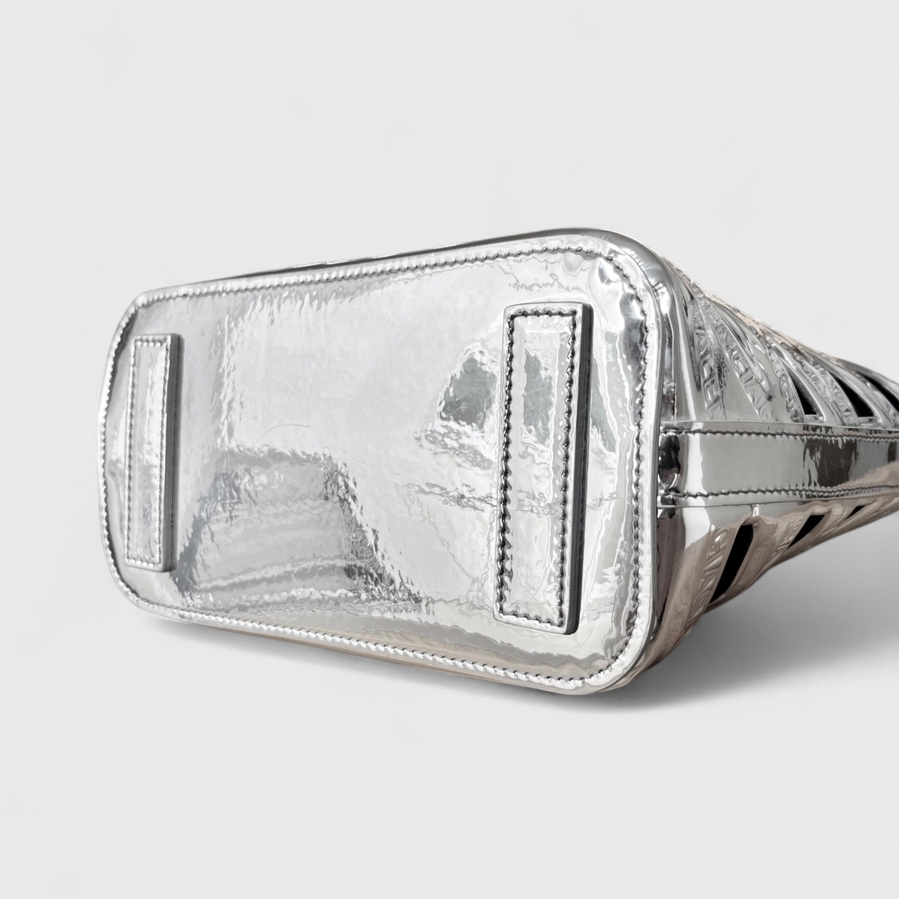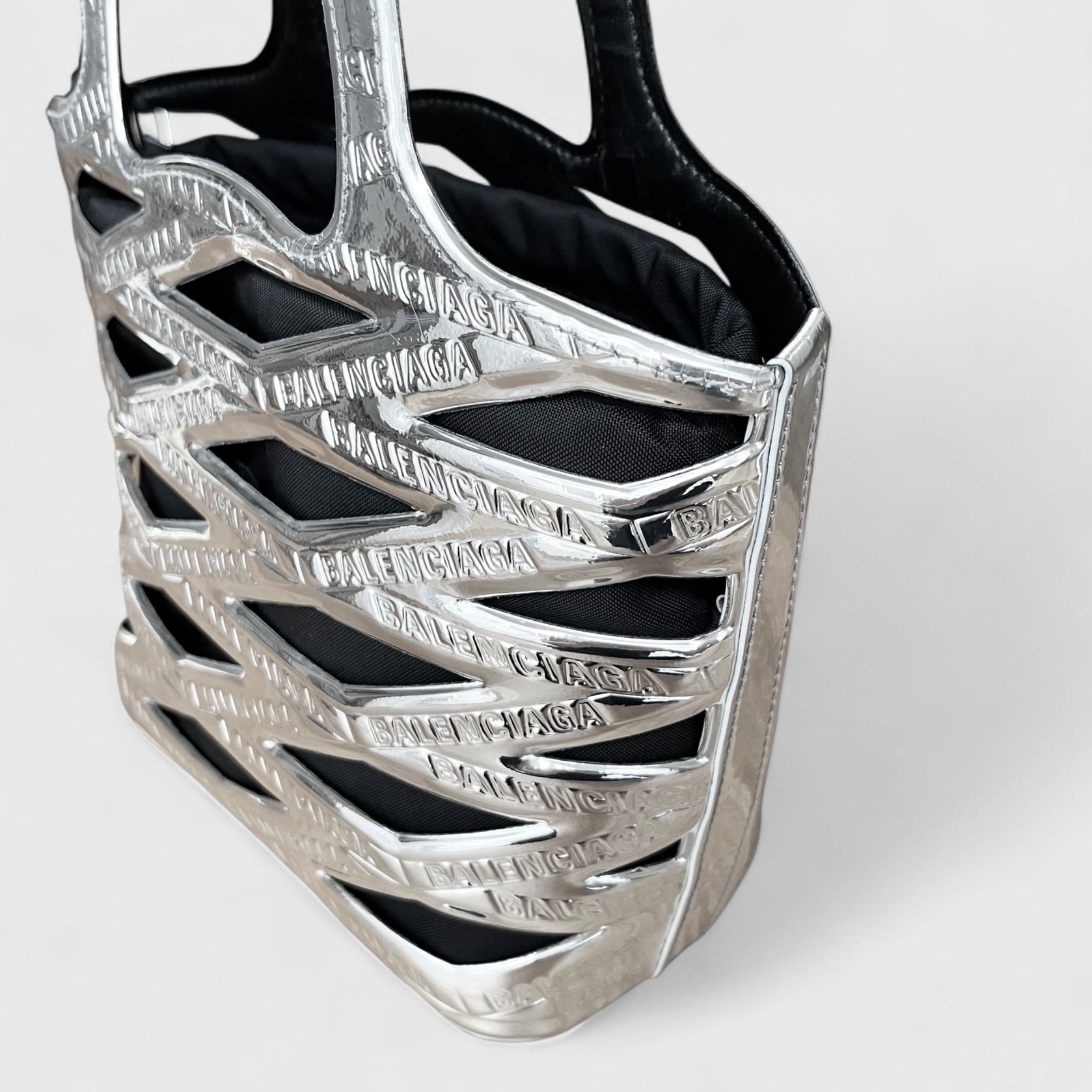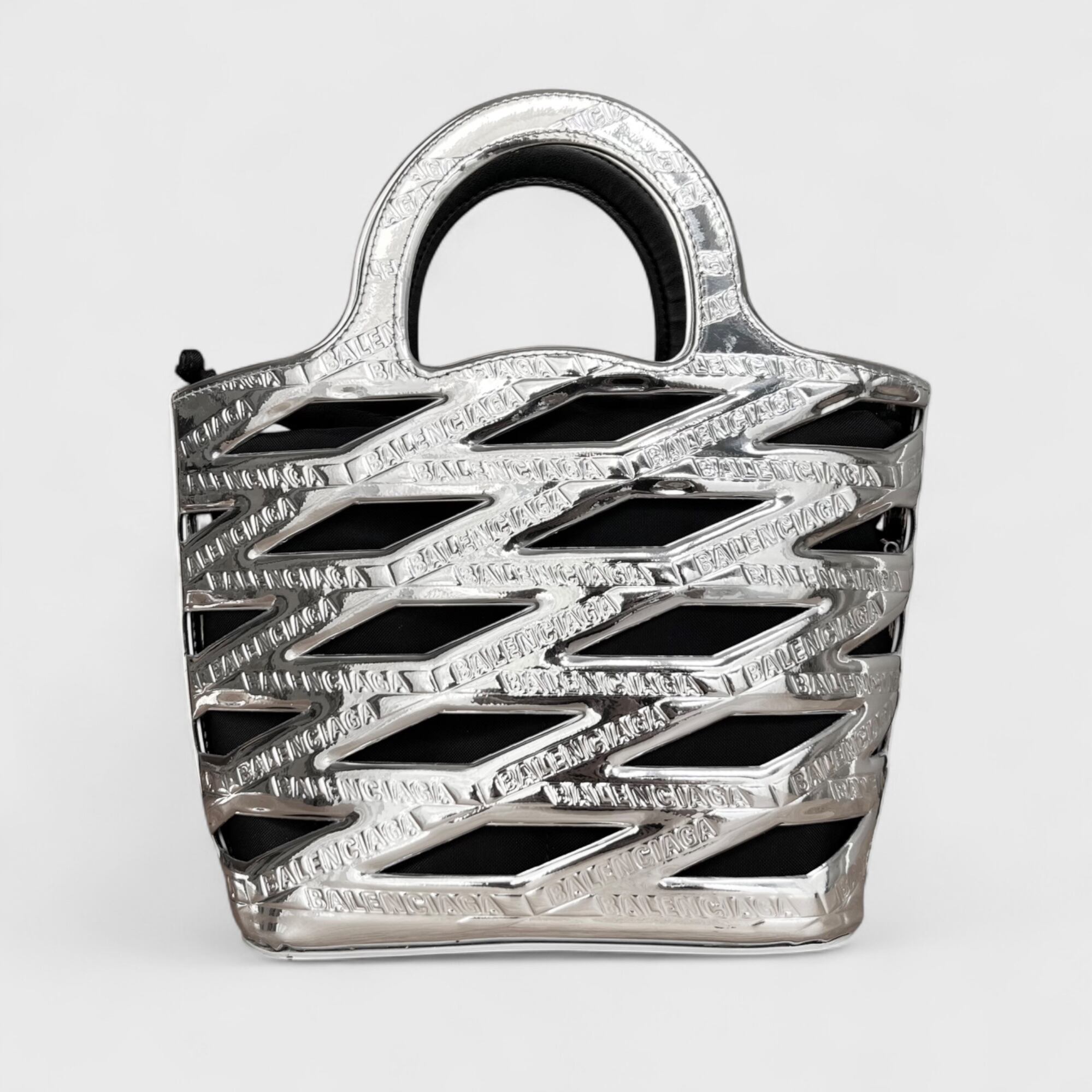 かごバッグをモダンに解釈したネオバスケット、シルバーカラーのお品になります。