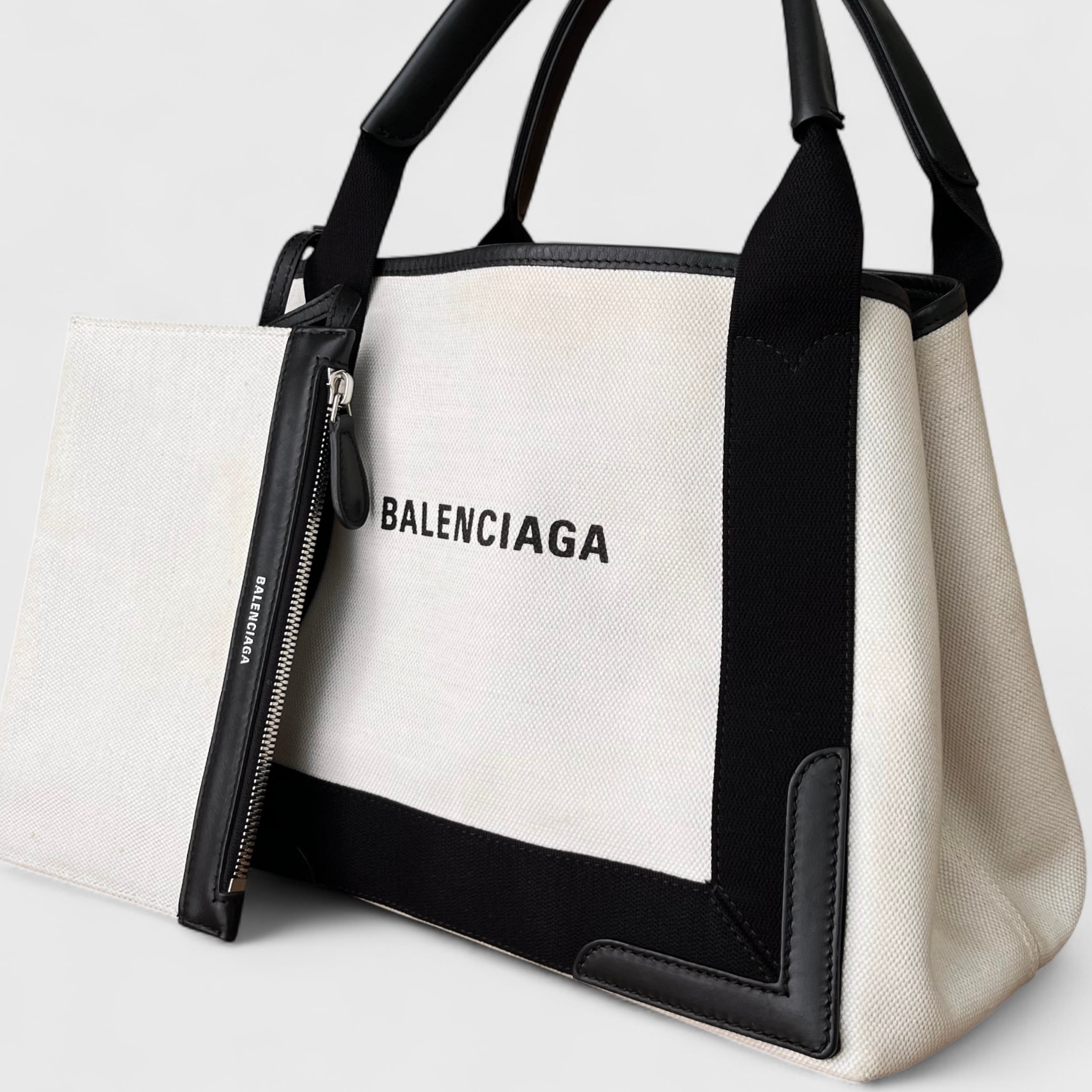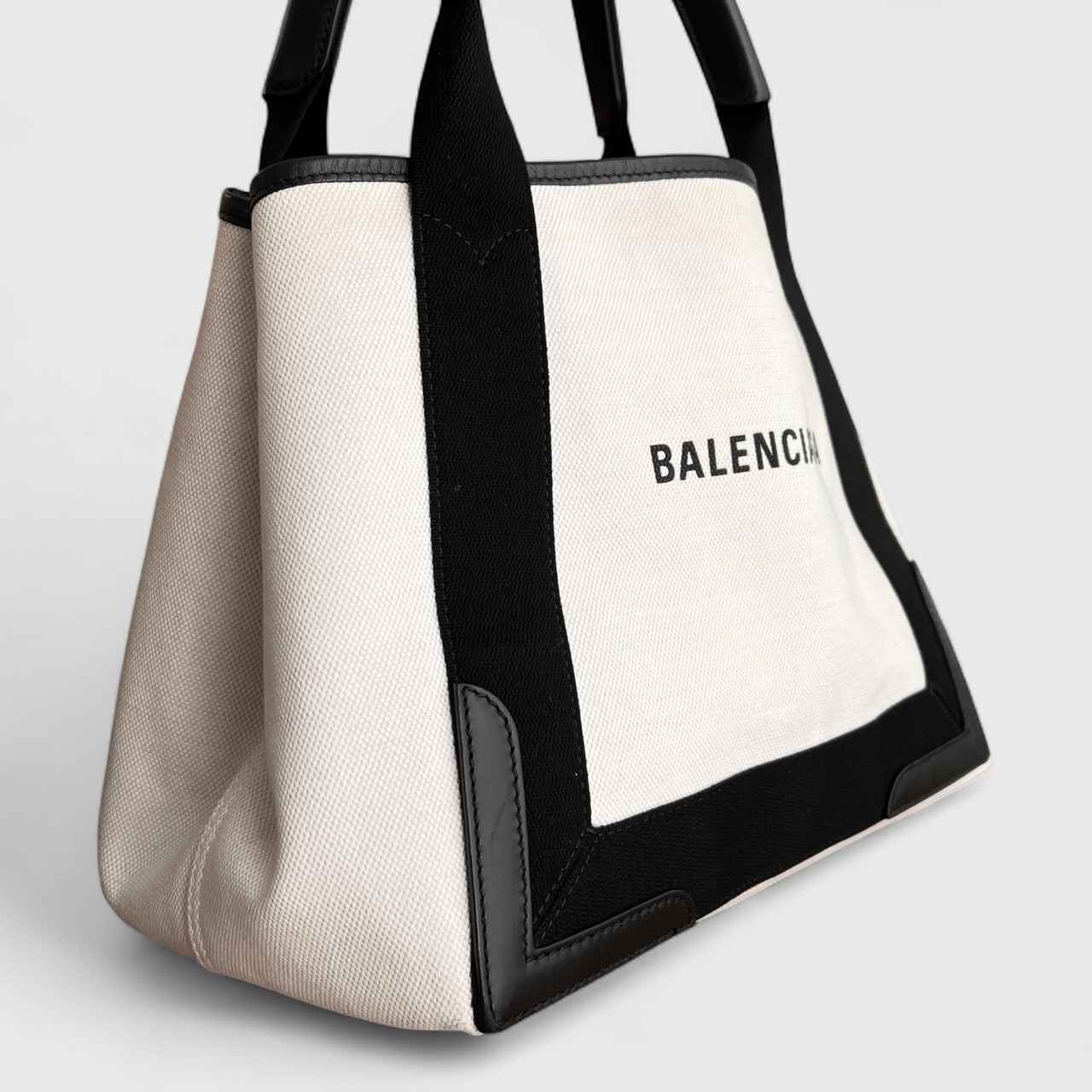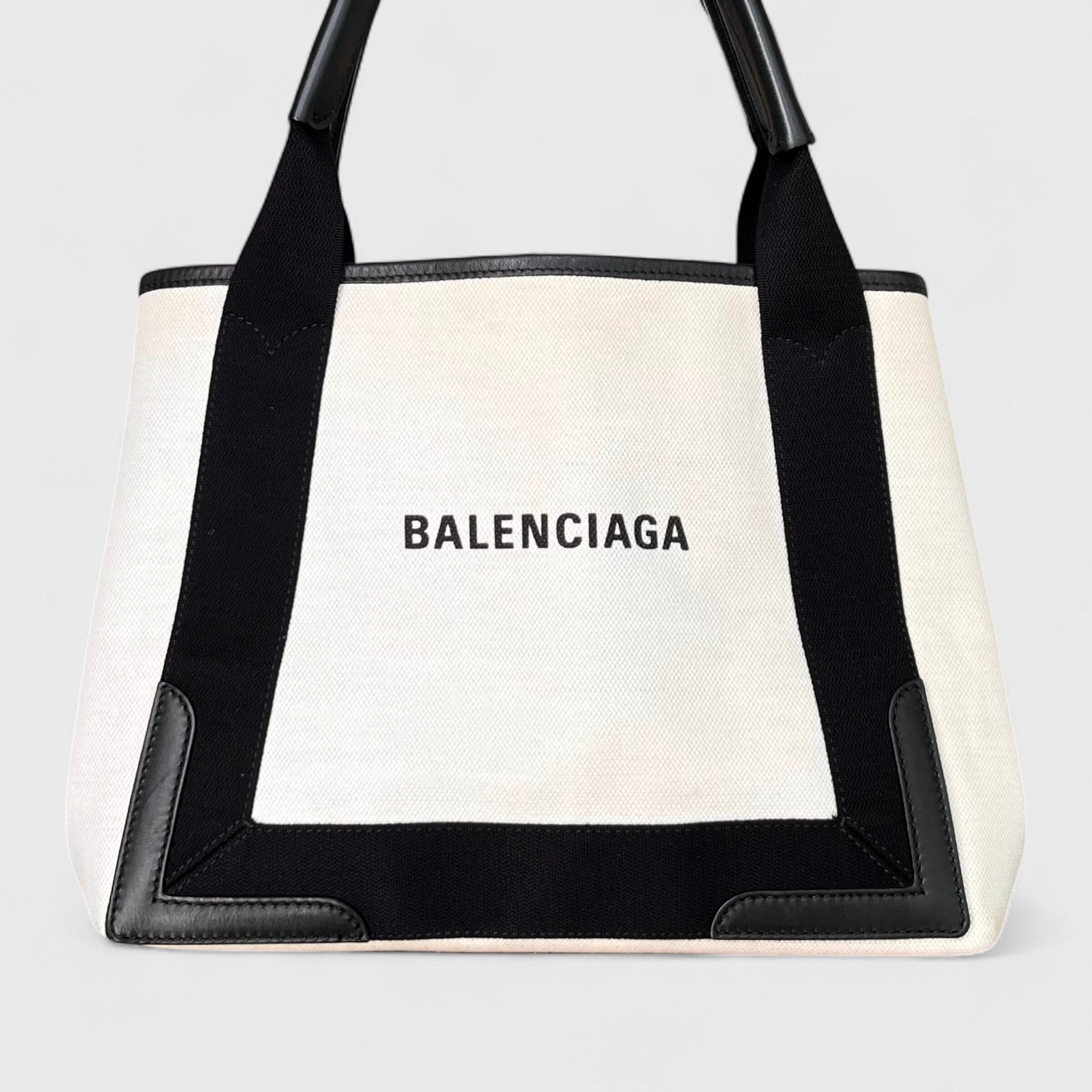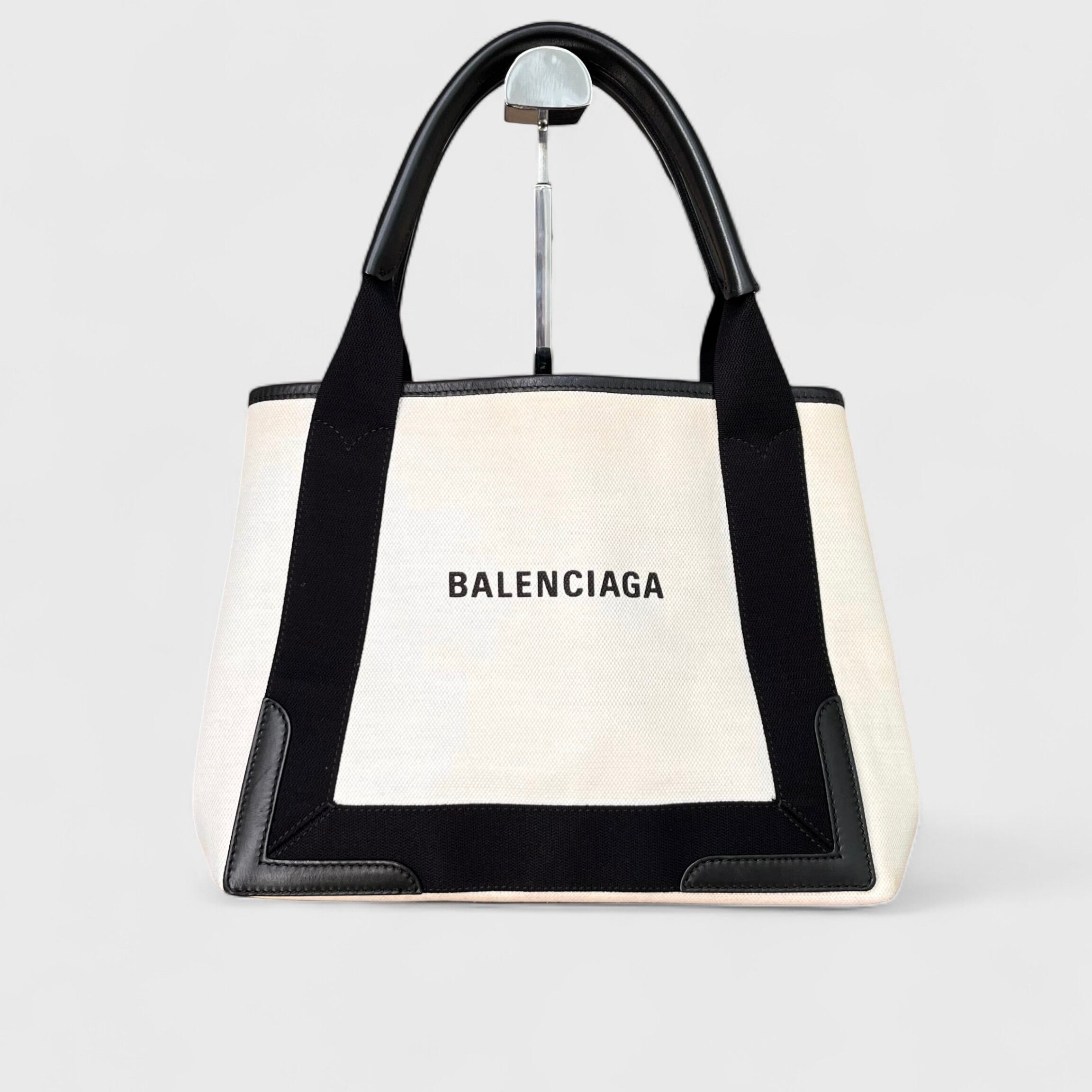 BALENCIAGA バレンシアガ ネイビー カバ スモール 339933 オフホワイト&ブラック