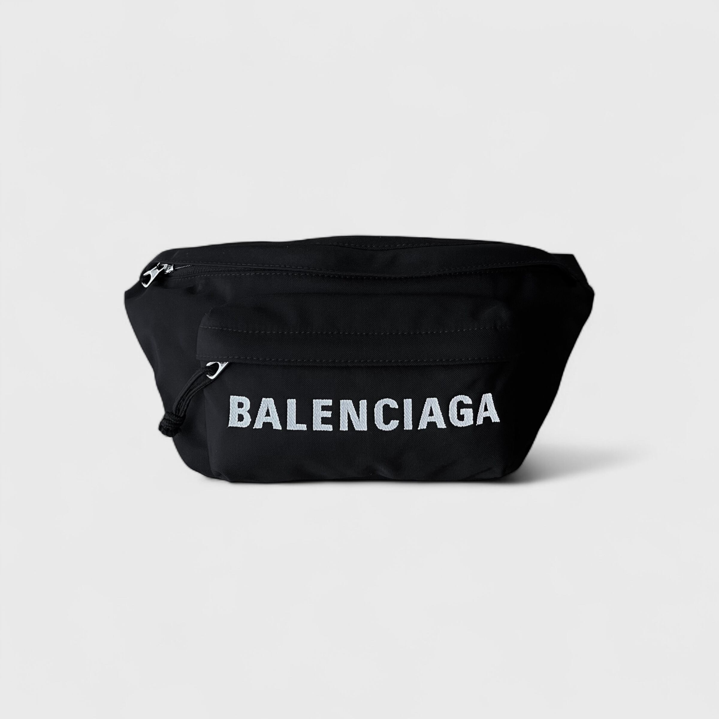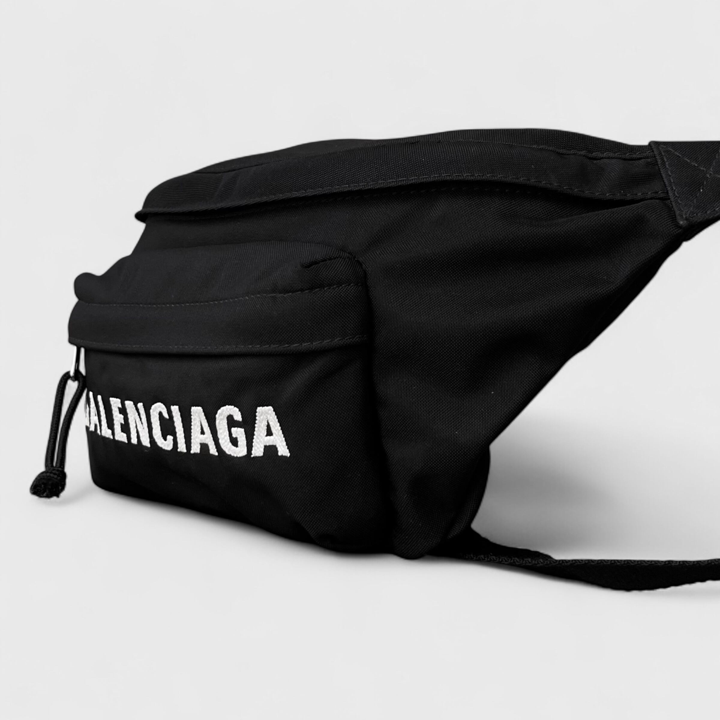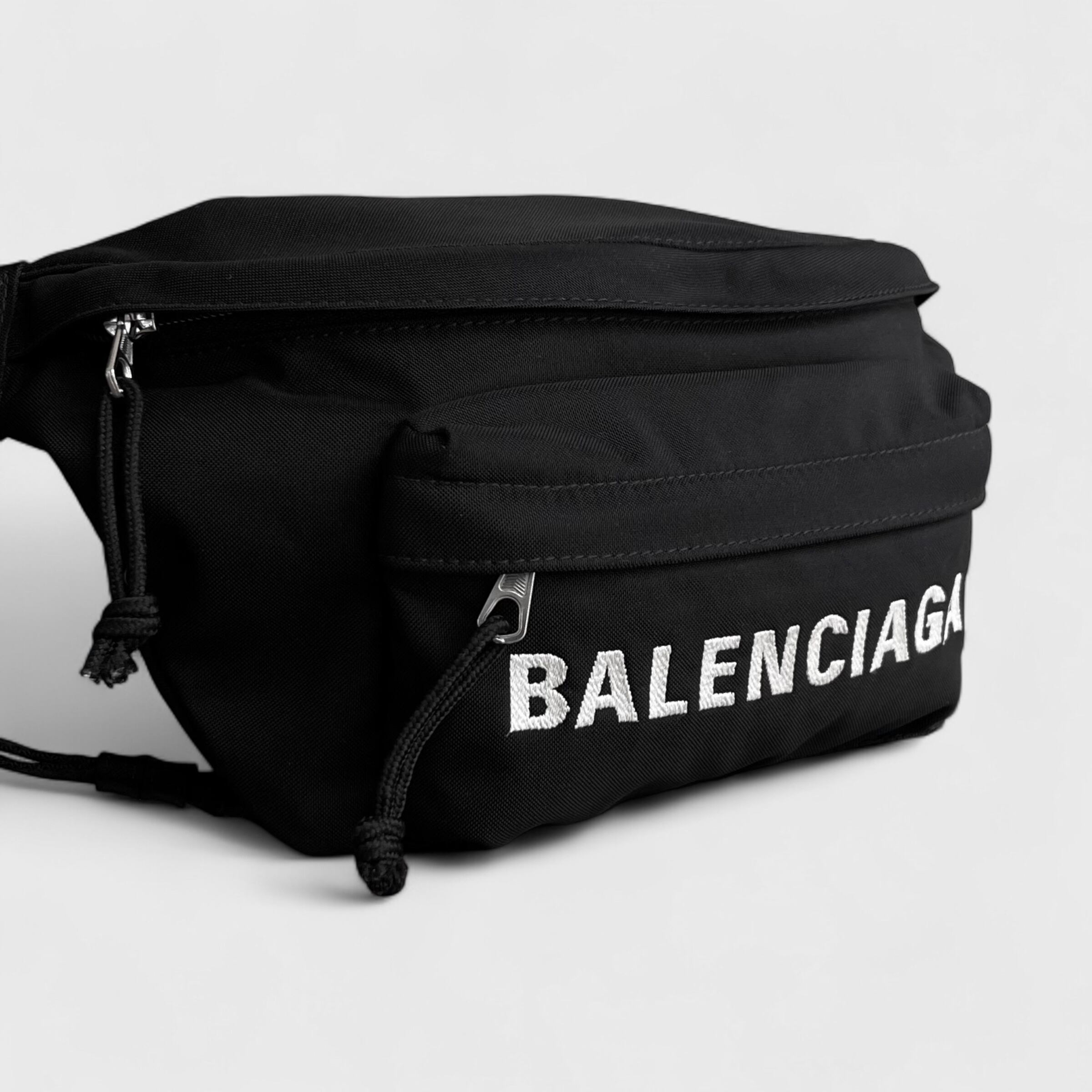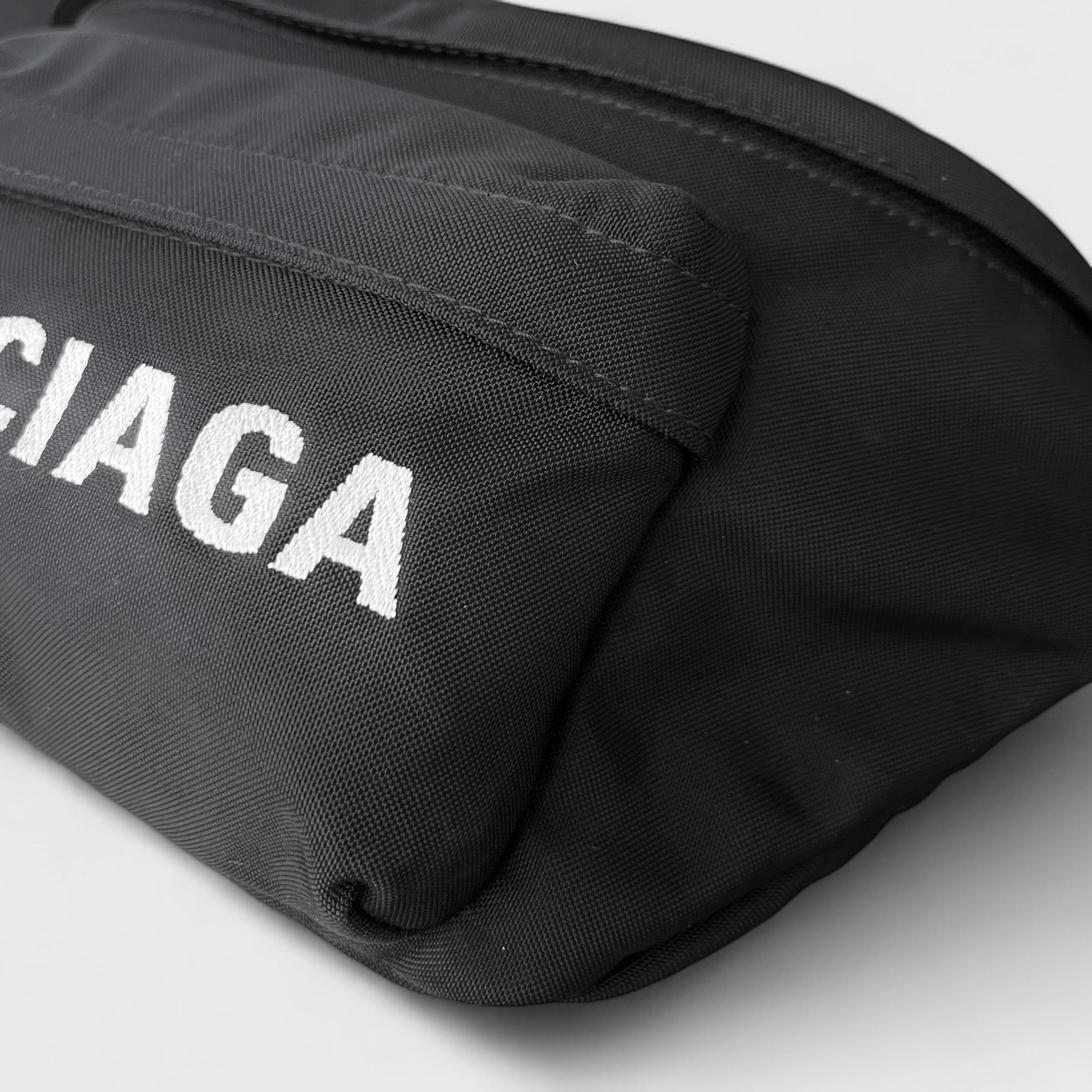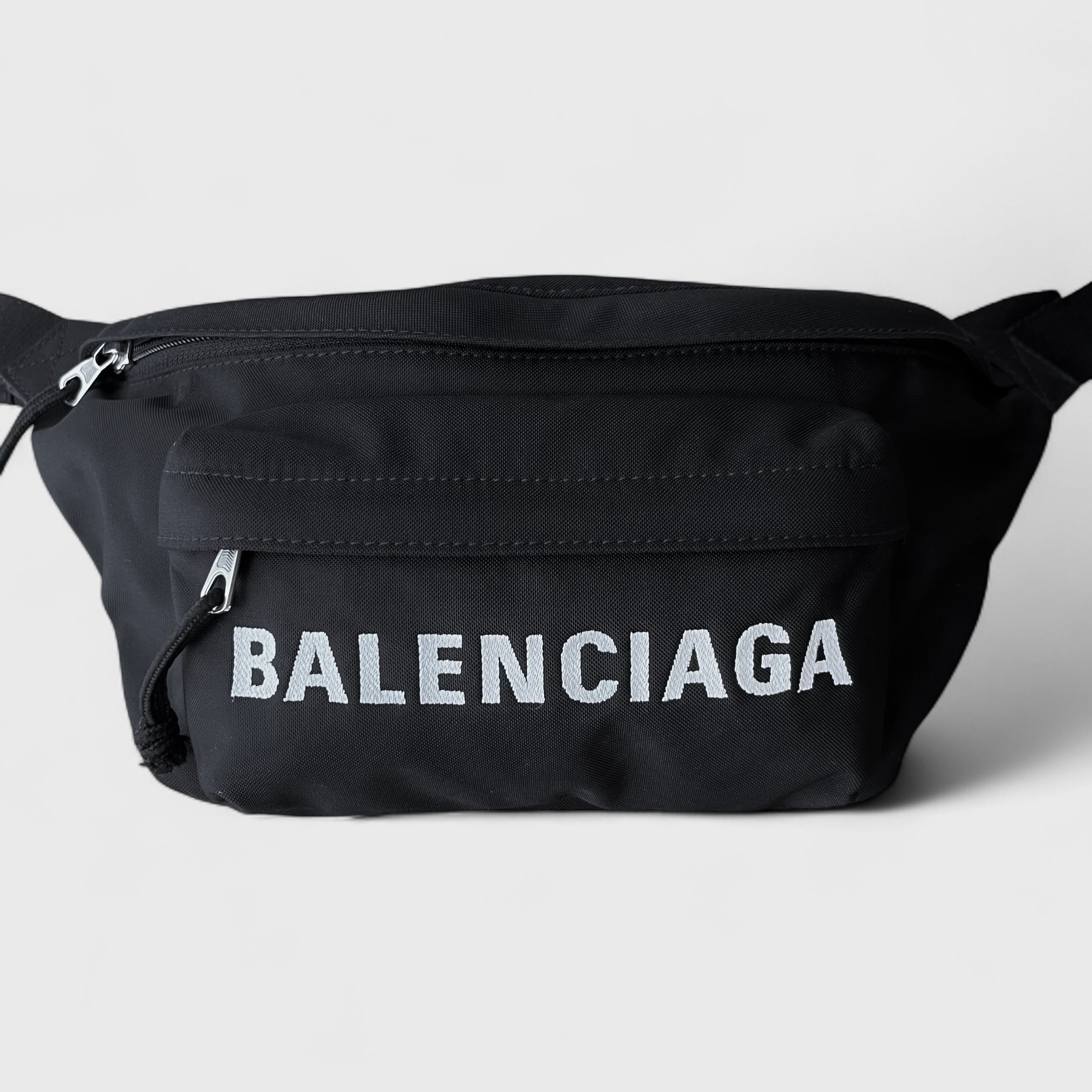 BALENCIAGAのウィールラインのボディバッグ、ベルト部分もブラックの人気カラーのお品になります。
