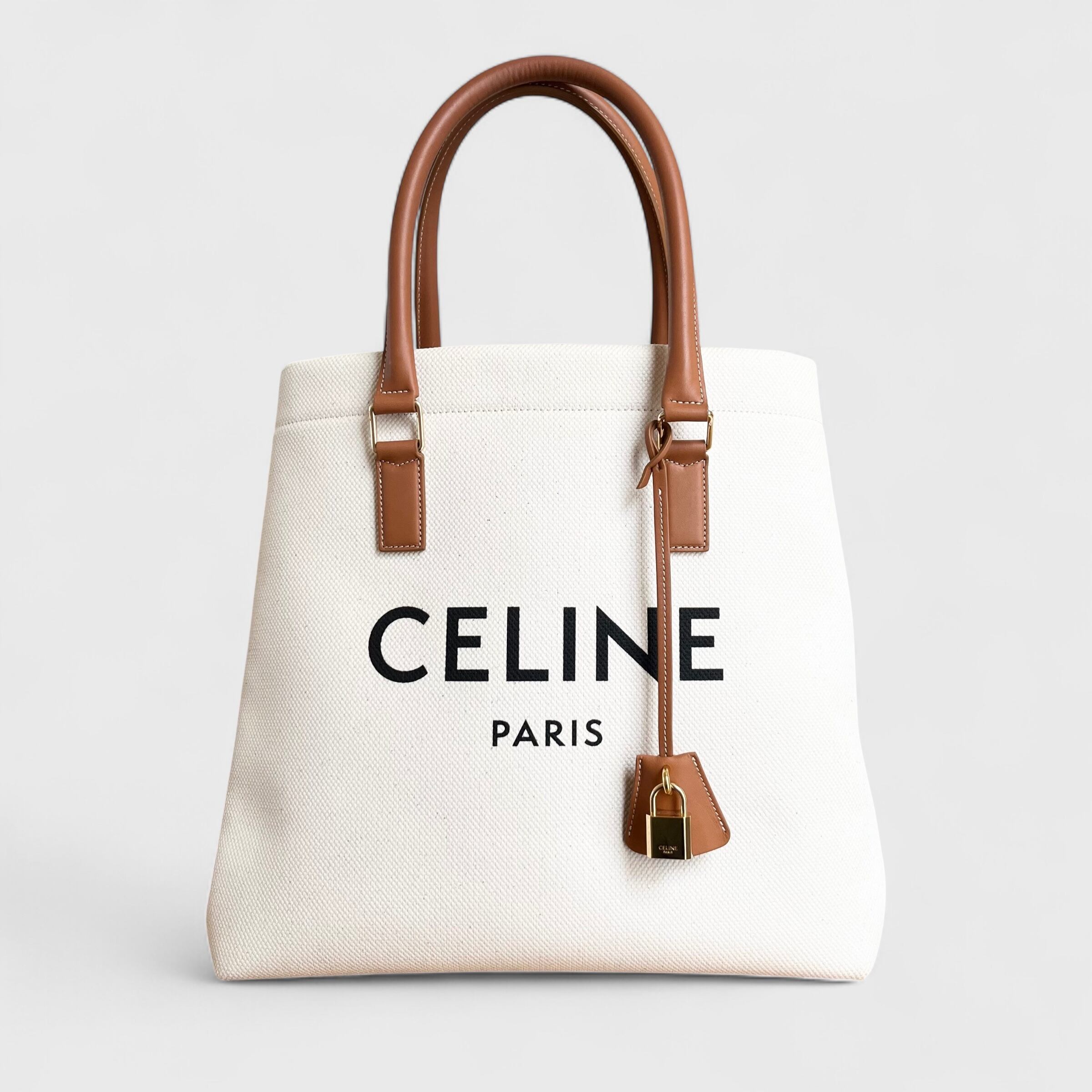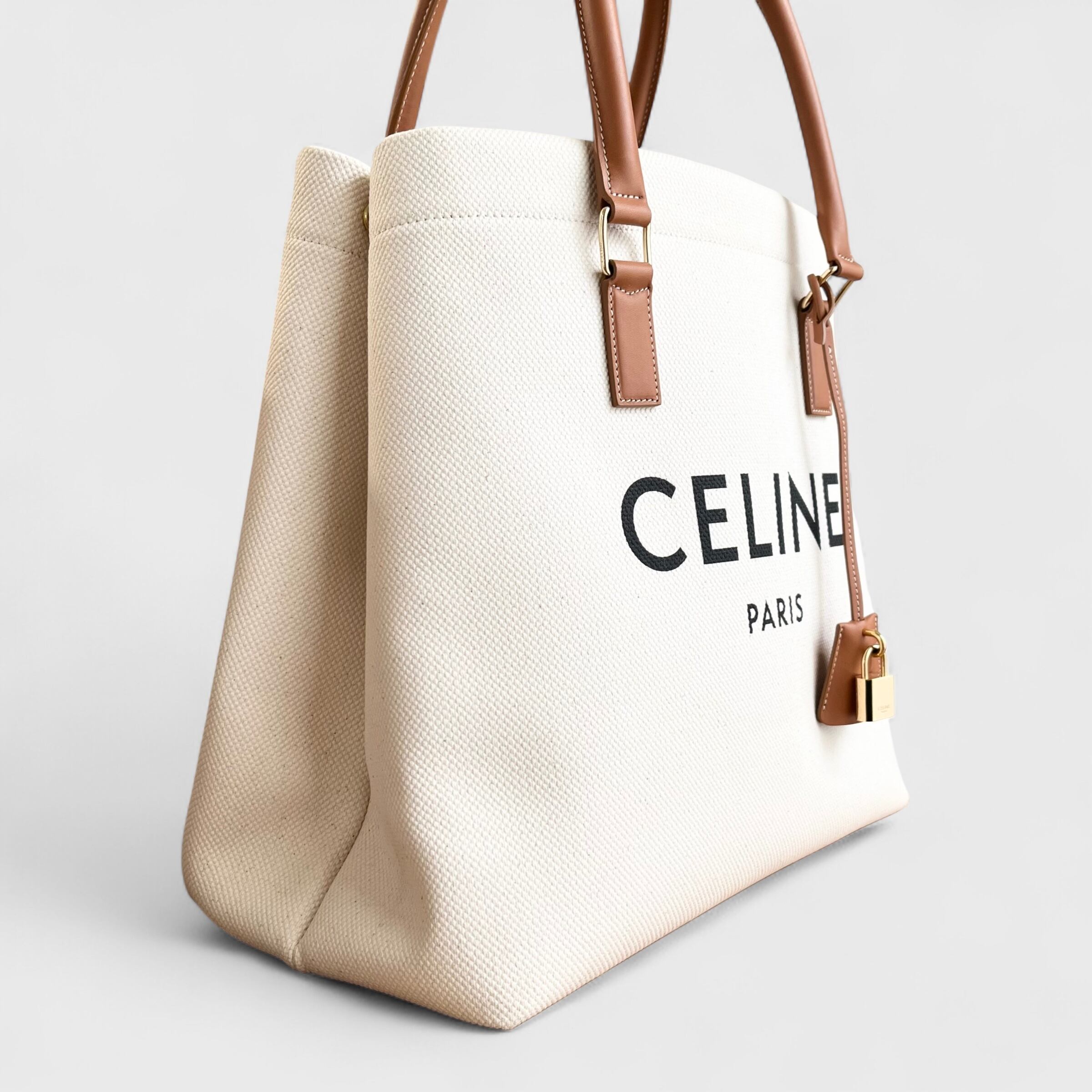 丈夫なキャンバス地にレザーディティールを加えたロゴデザインが印象的なCELINEのトートバッグ、大容量の収納力が魅力のお品になります。