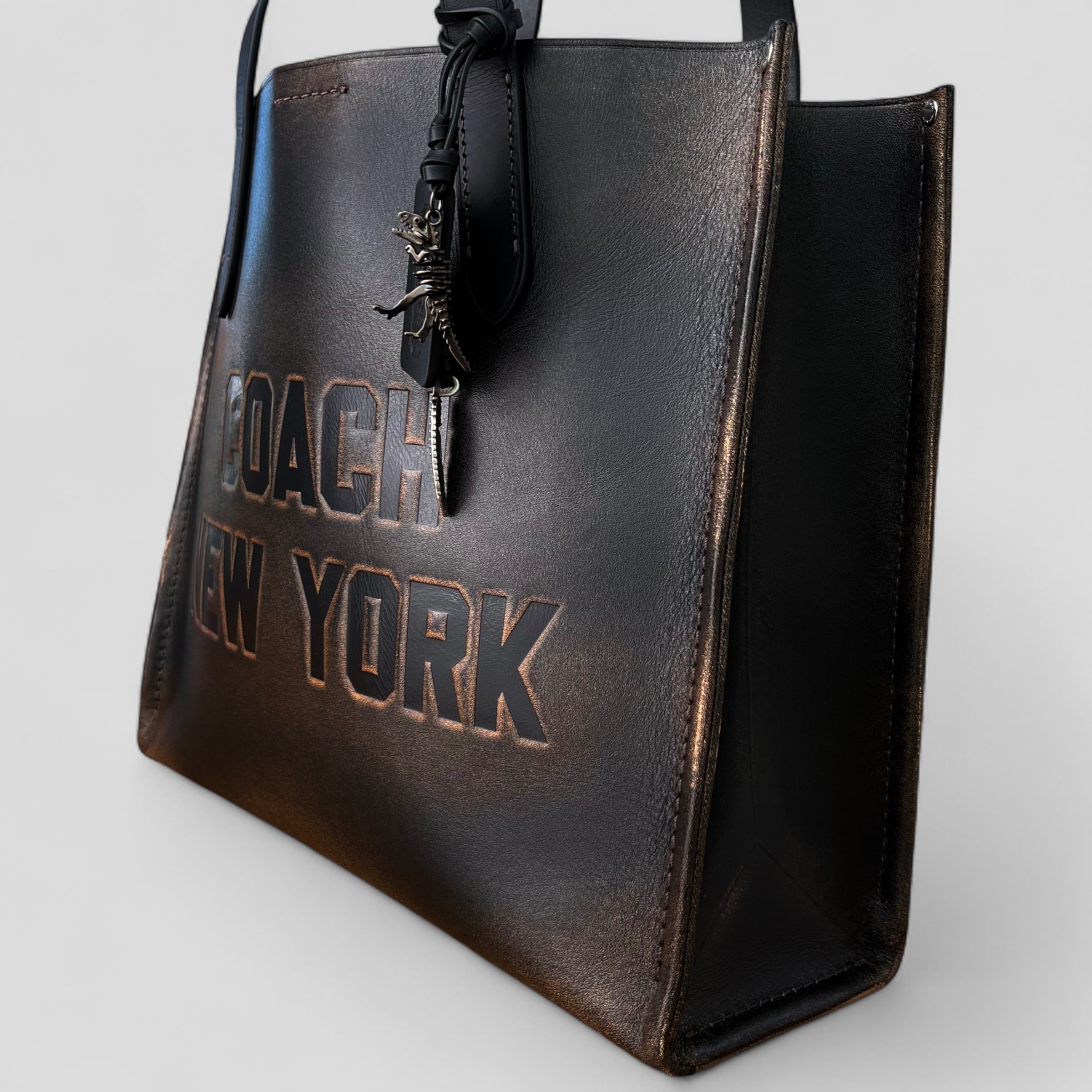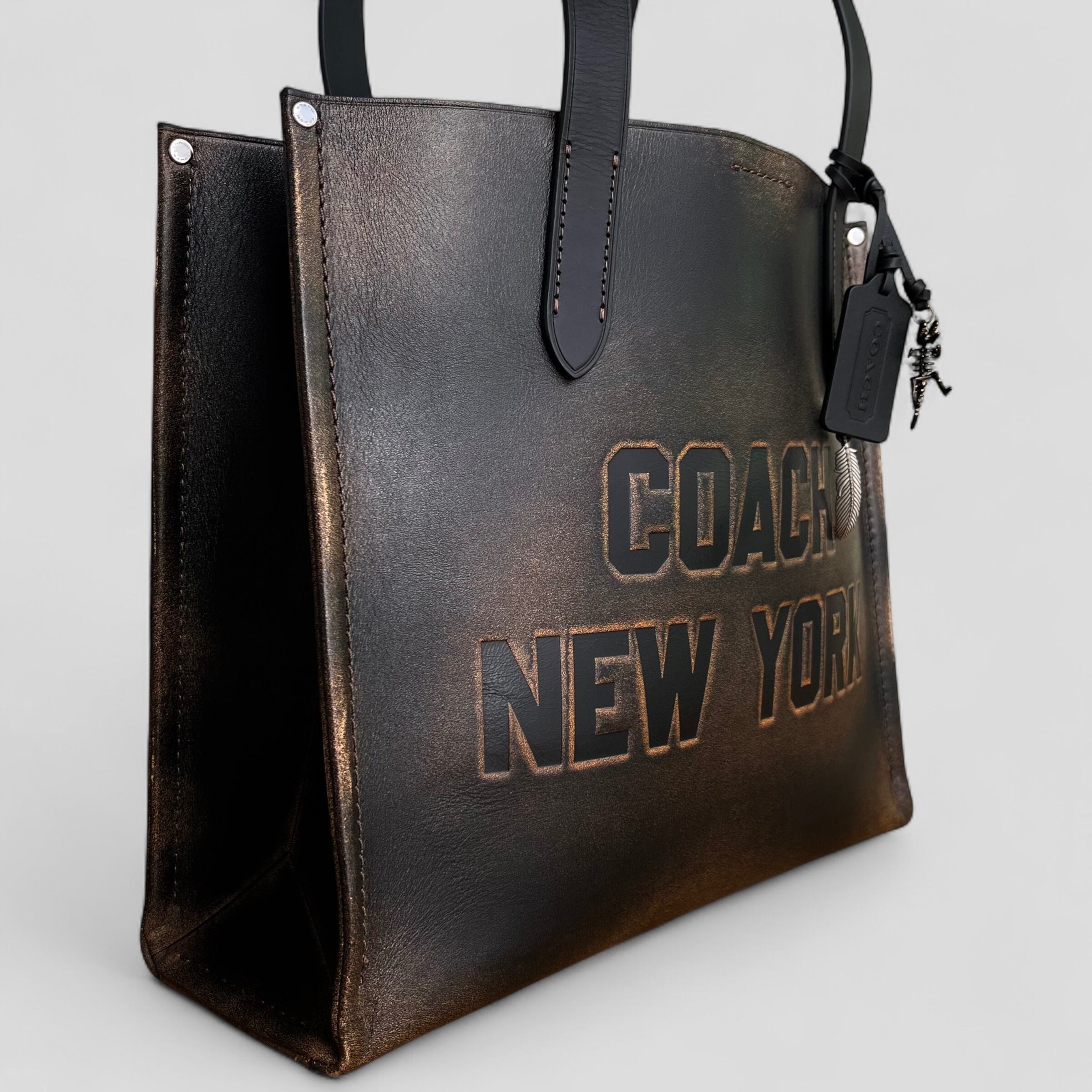 COACH コーチ リレートートバッグ34 ラブドレザー CBF30 ブラック ライトタン