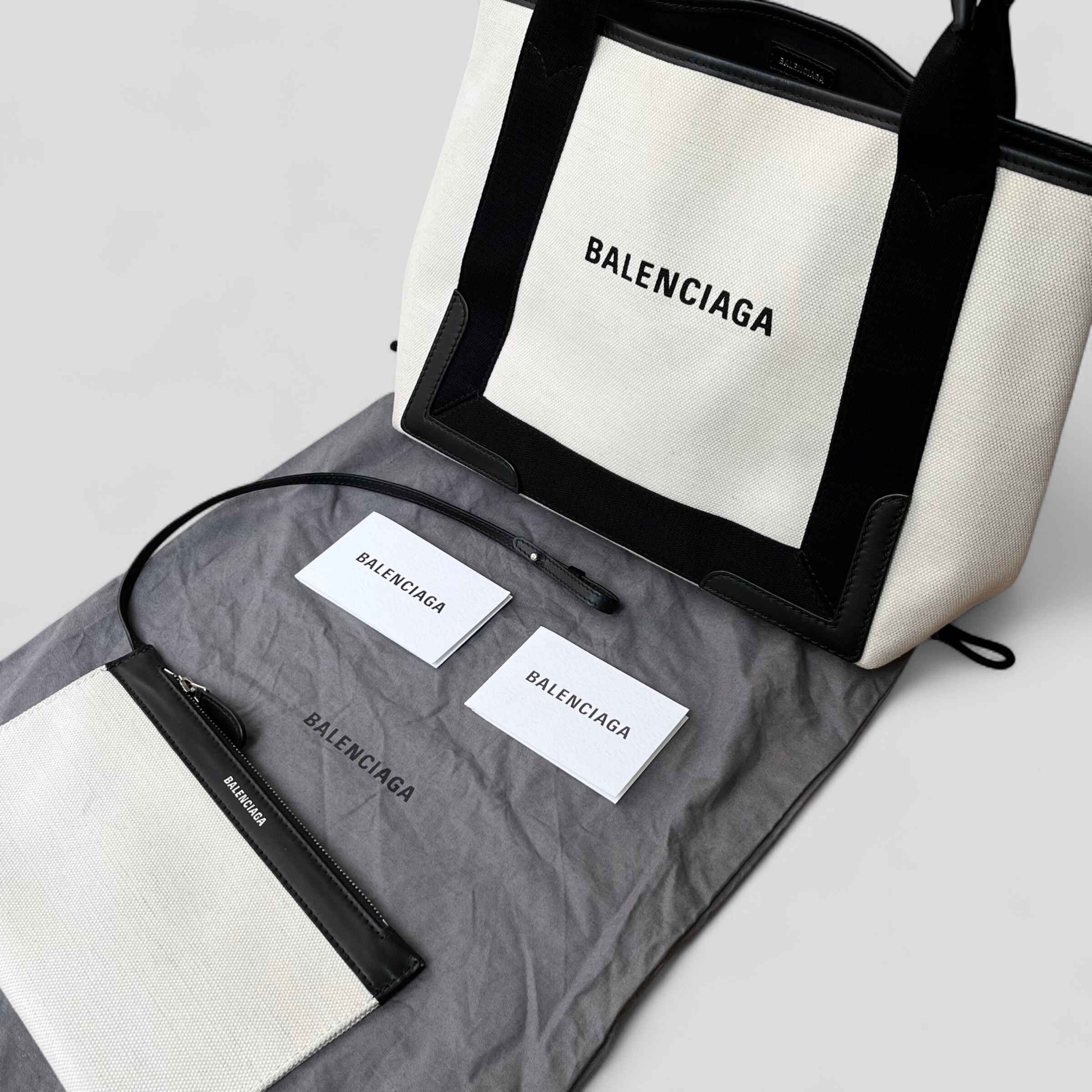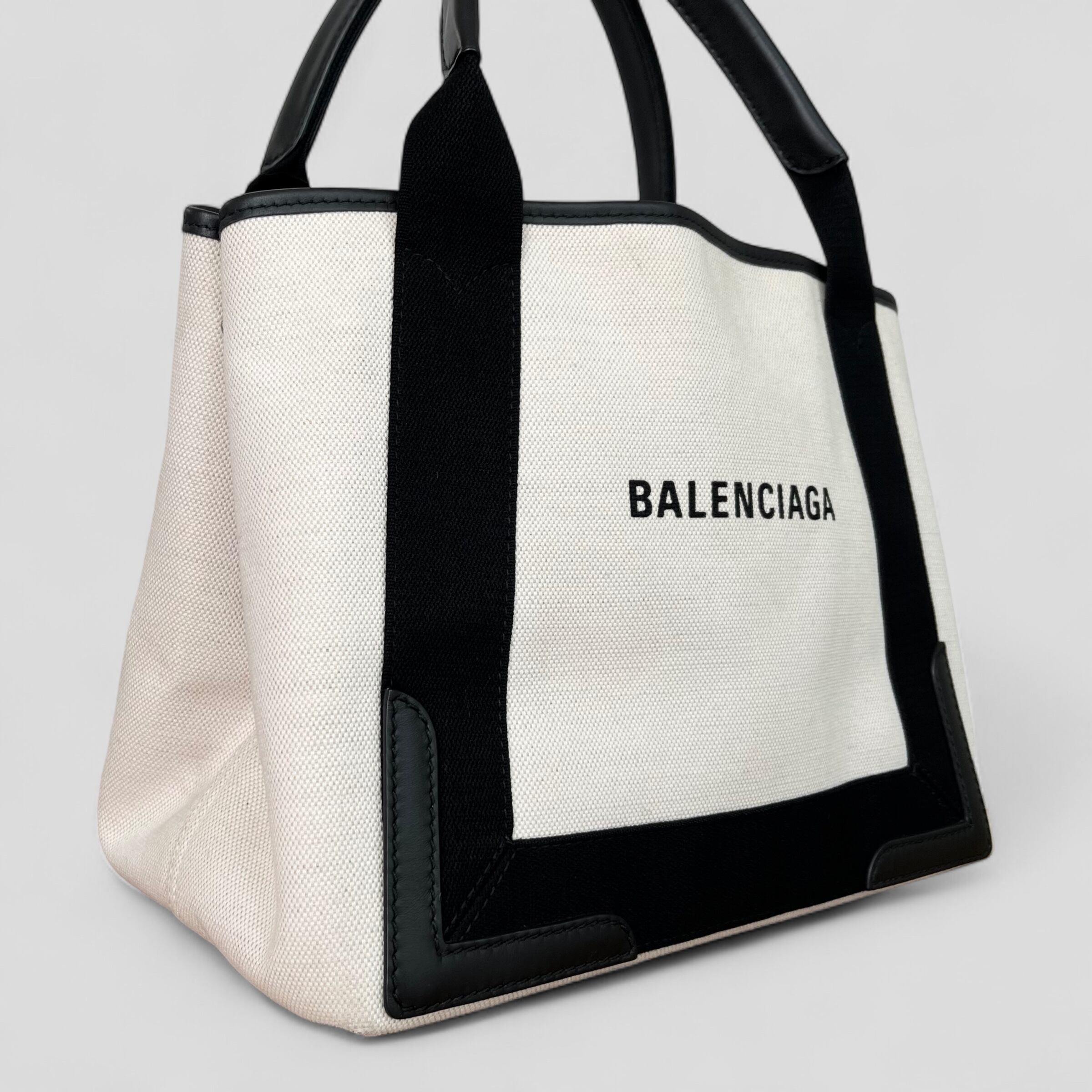 BALENCIAGA バレンシアガ ネイビー カバ スモール 339933 オフホワイト&ブラック