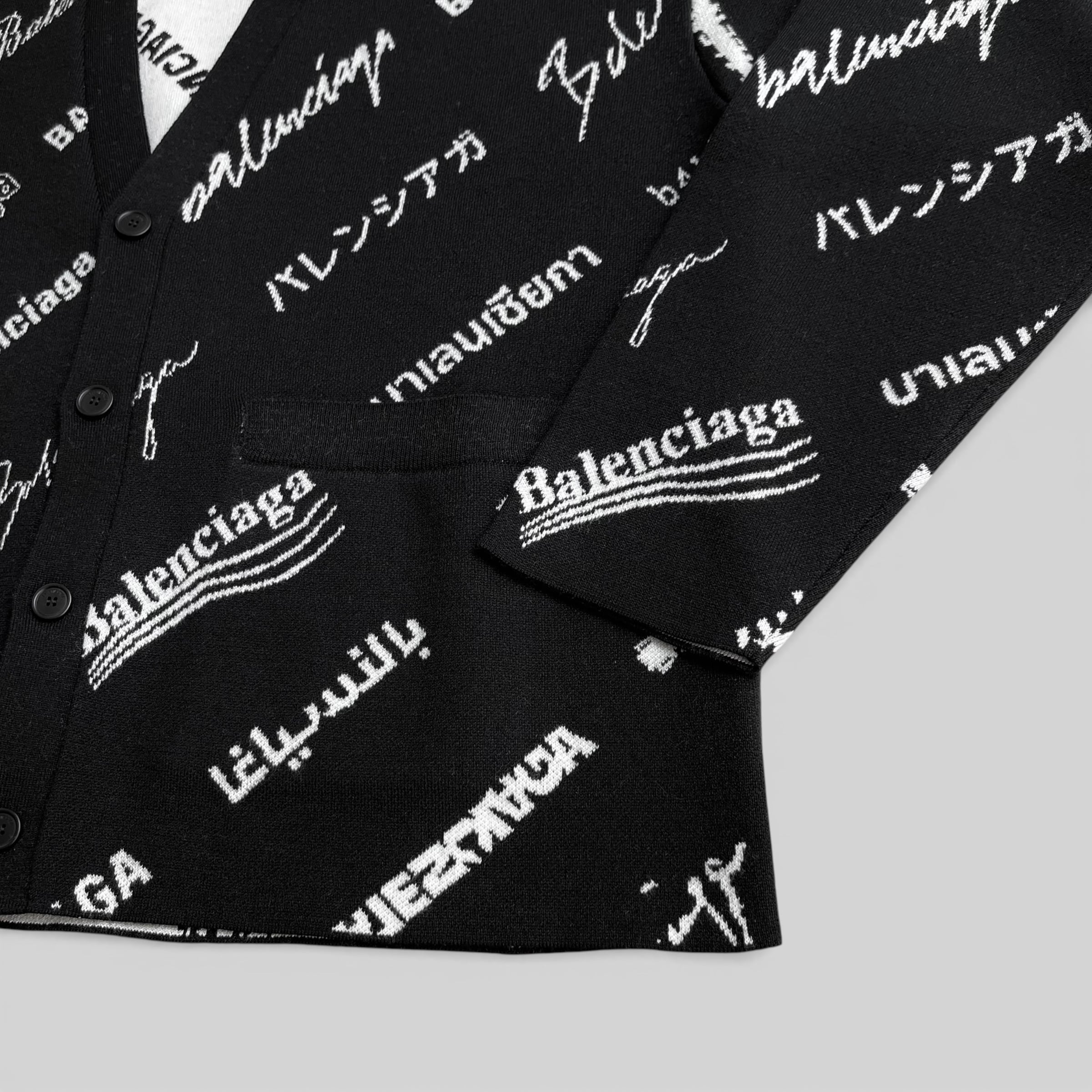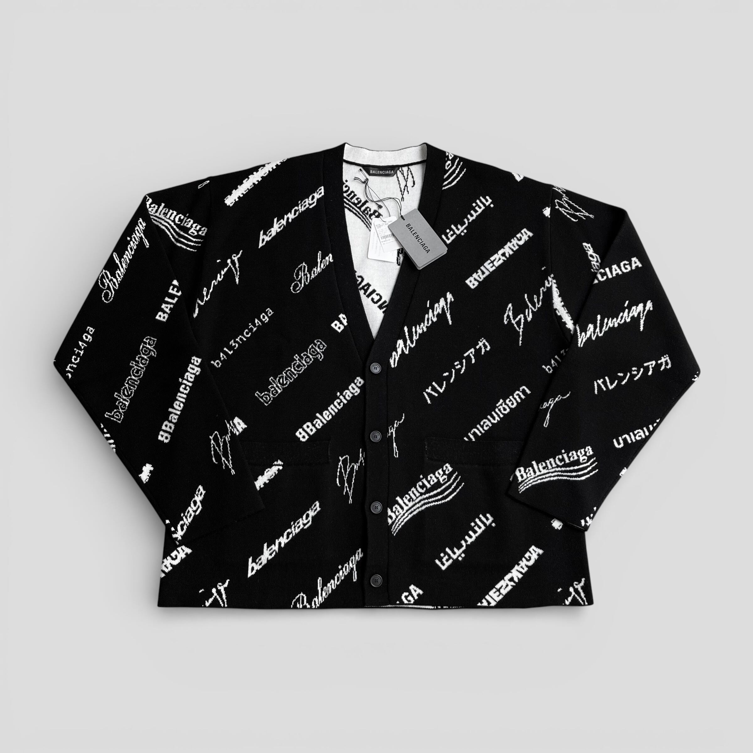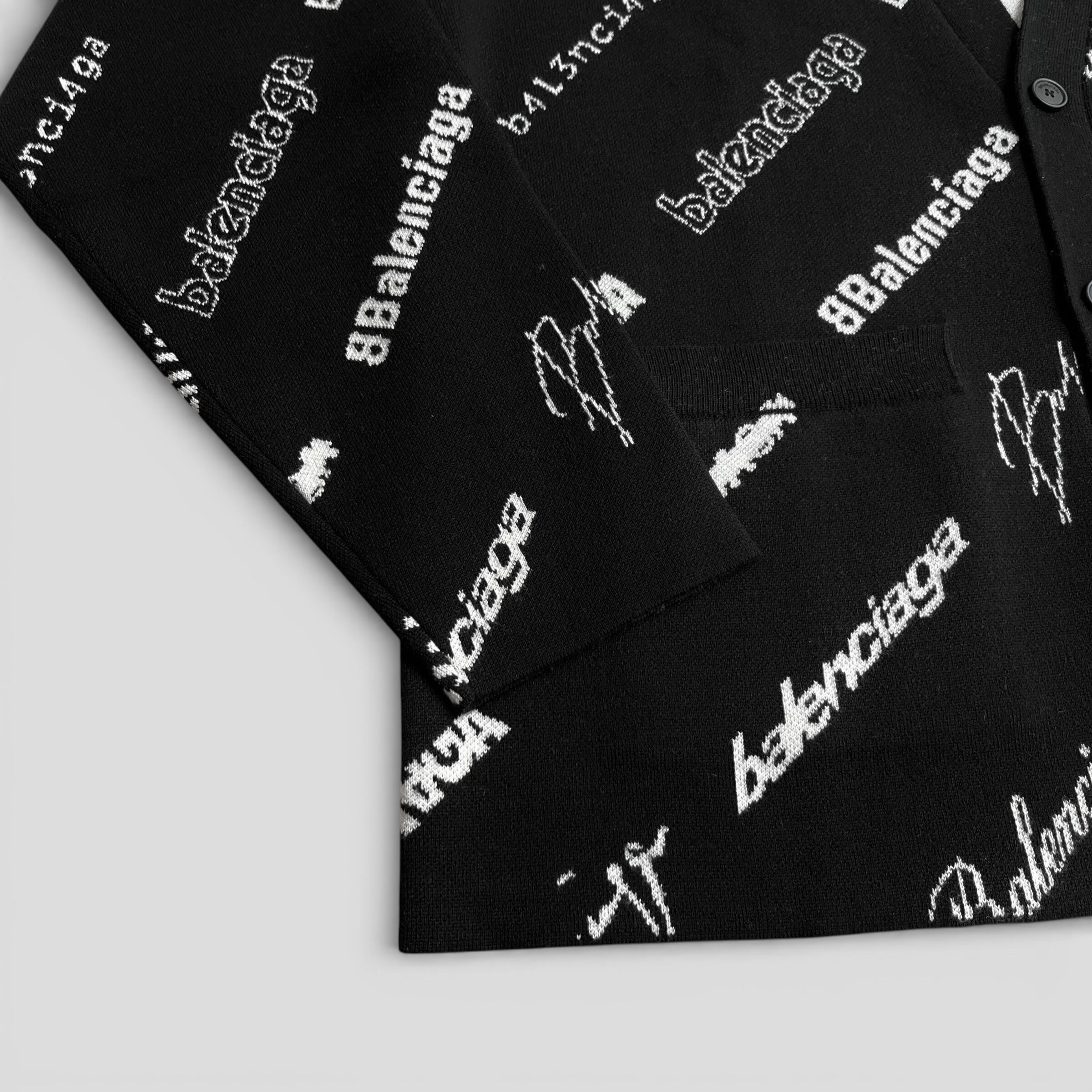BALENCIAGA バレンシアガ ロゴマニア オールオーバー ニット ブラック/ホワイト 1 724852