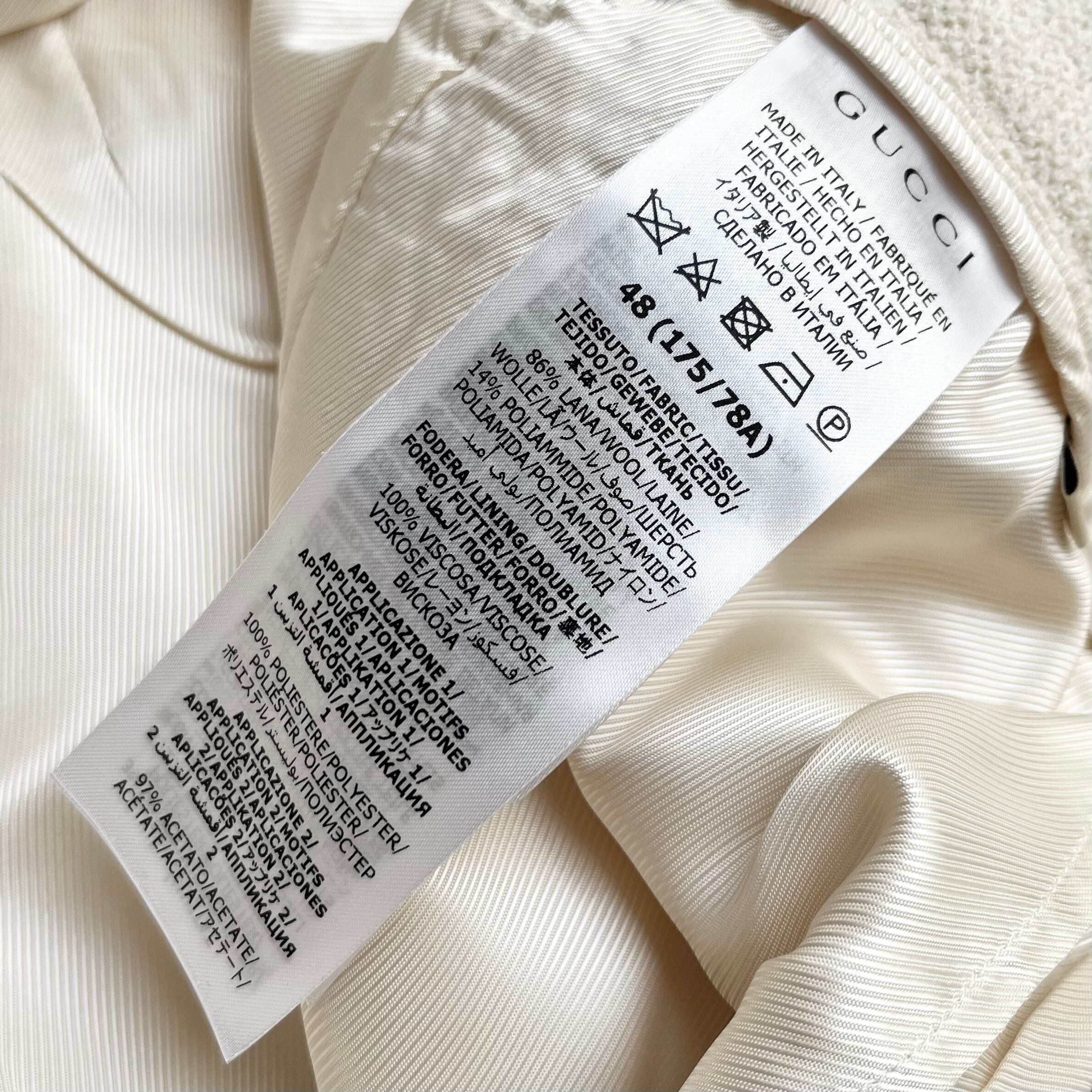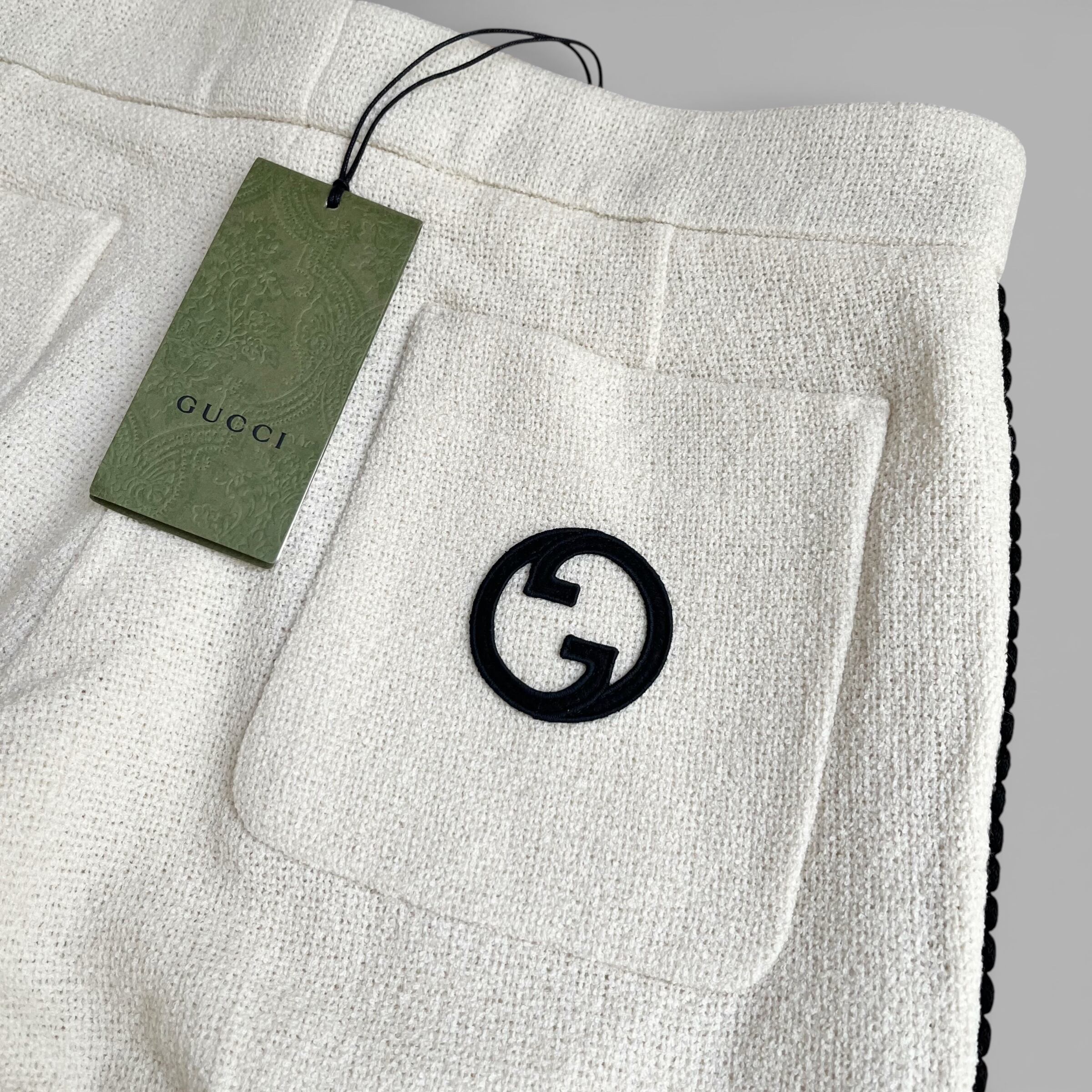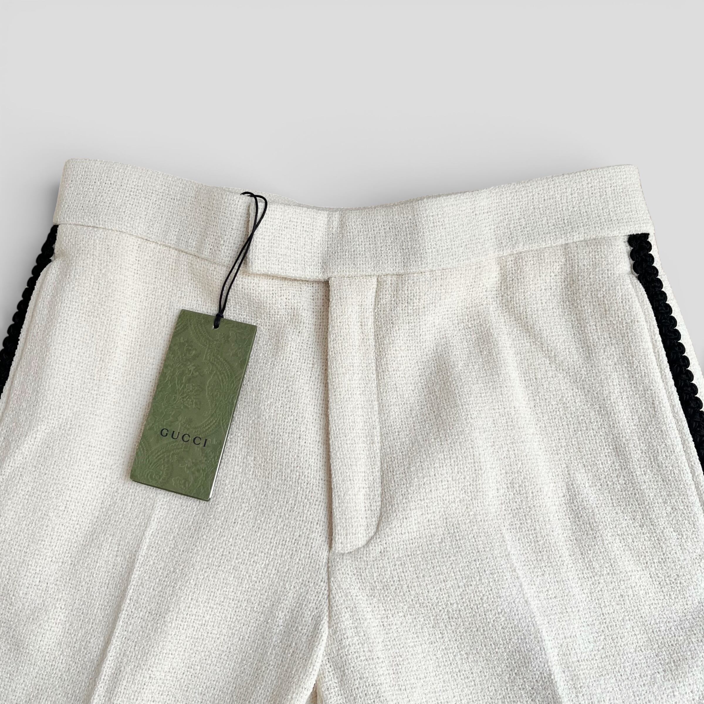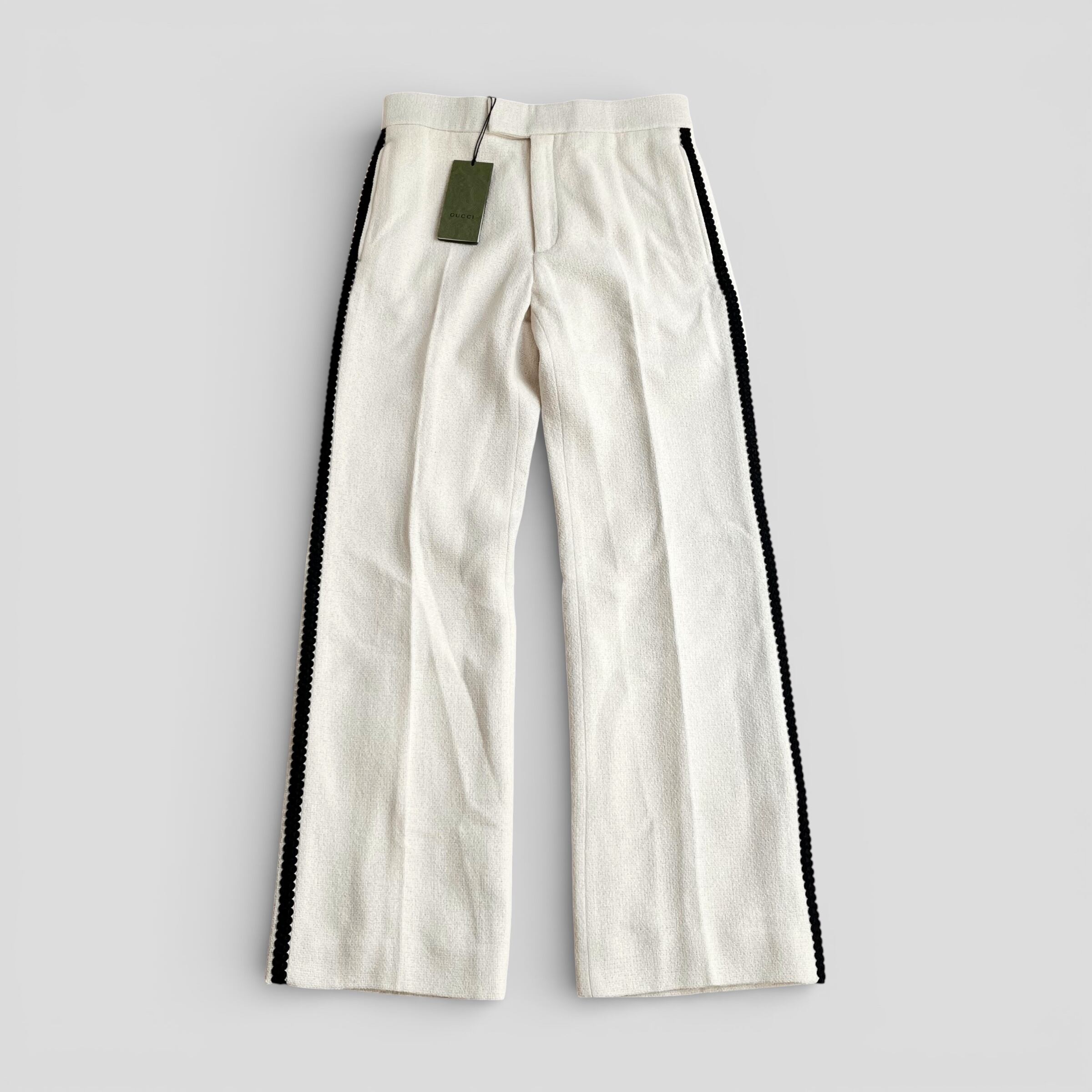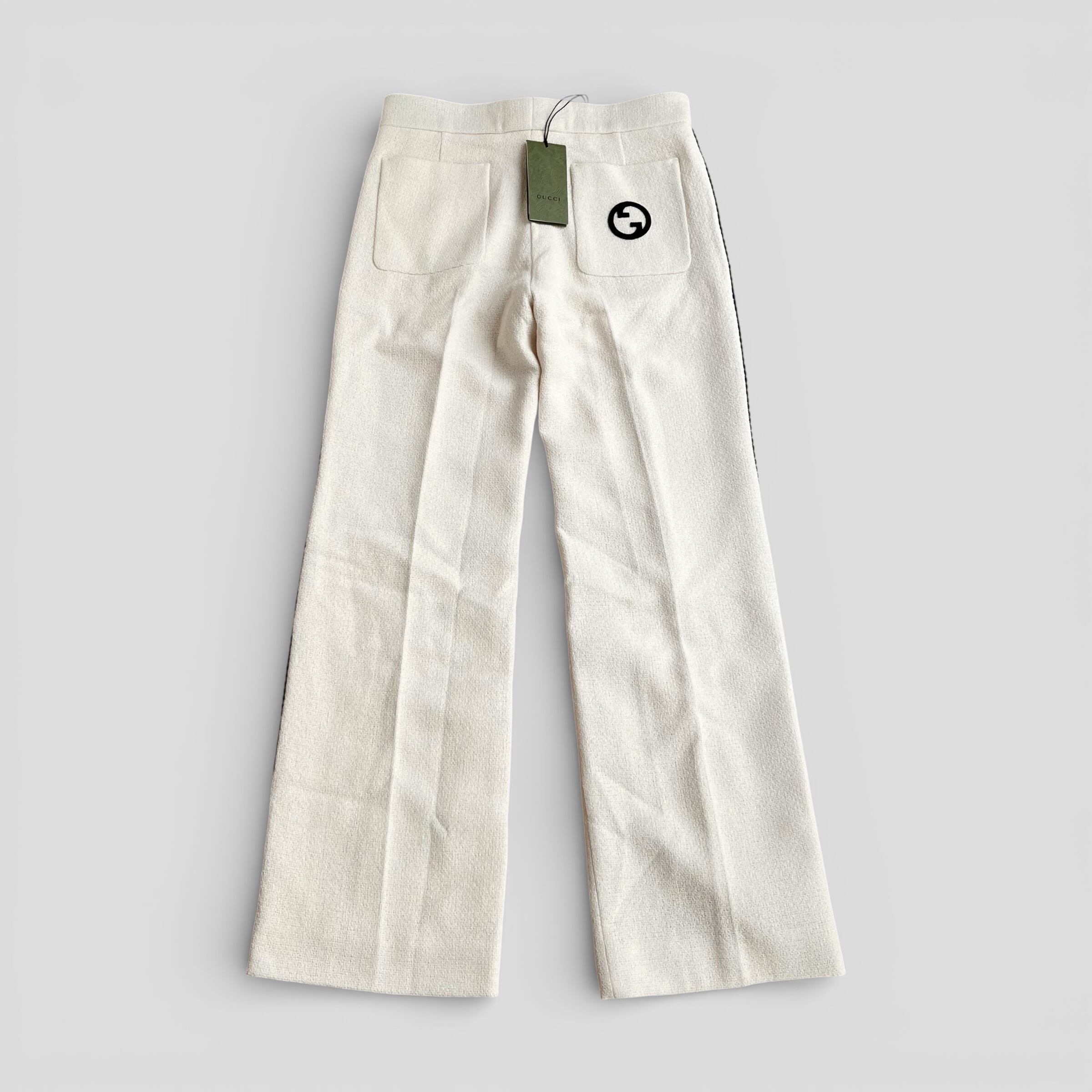 GUCCI Retro Logo-Patch Tweed Trousers Off-White 48