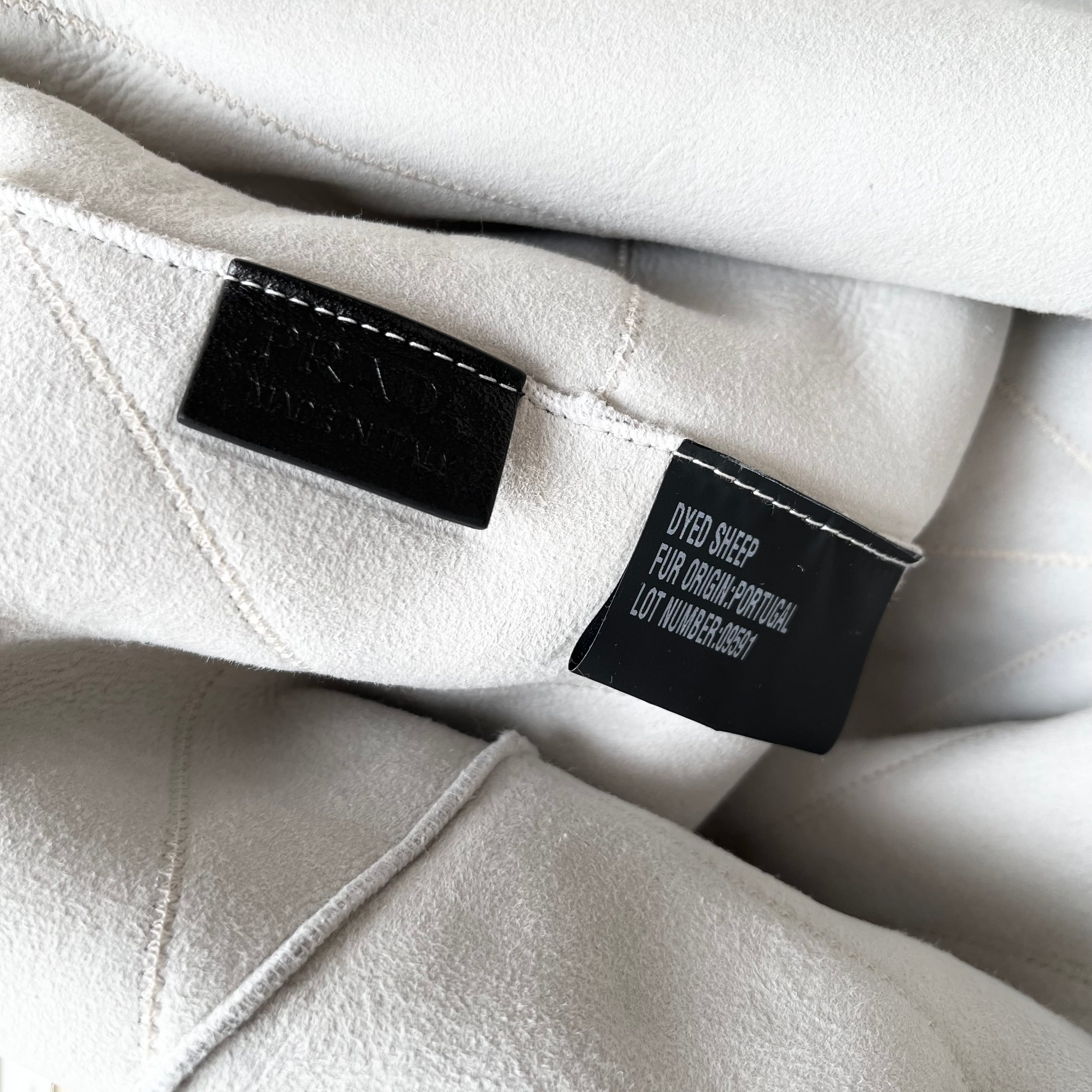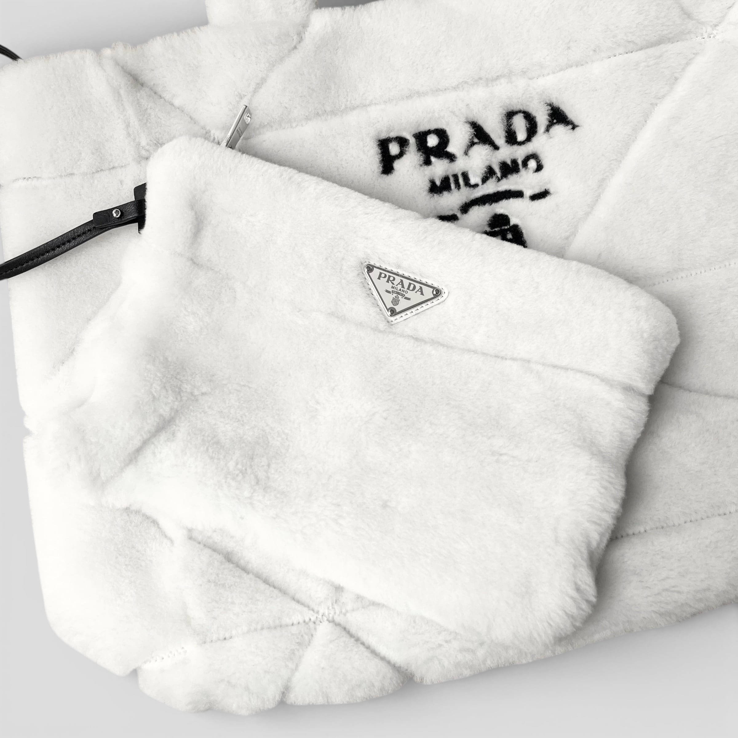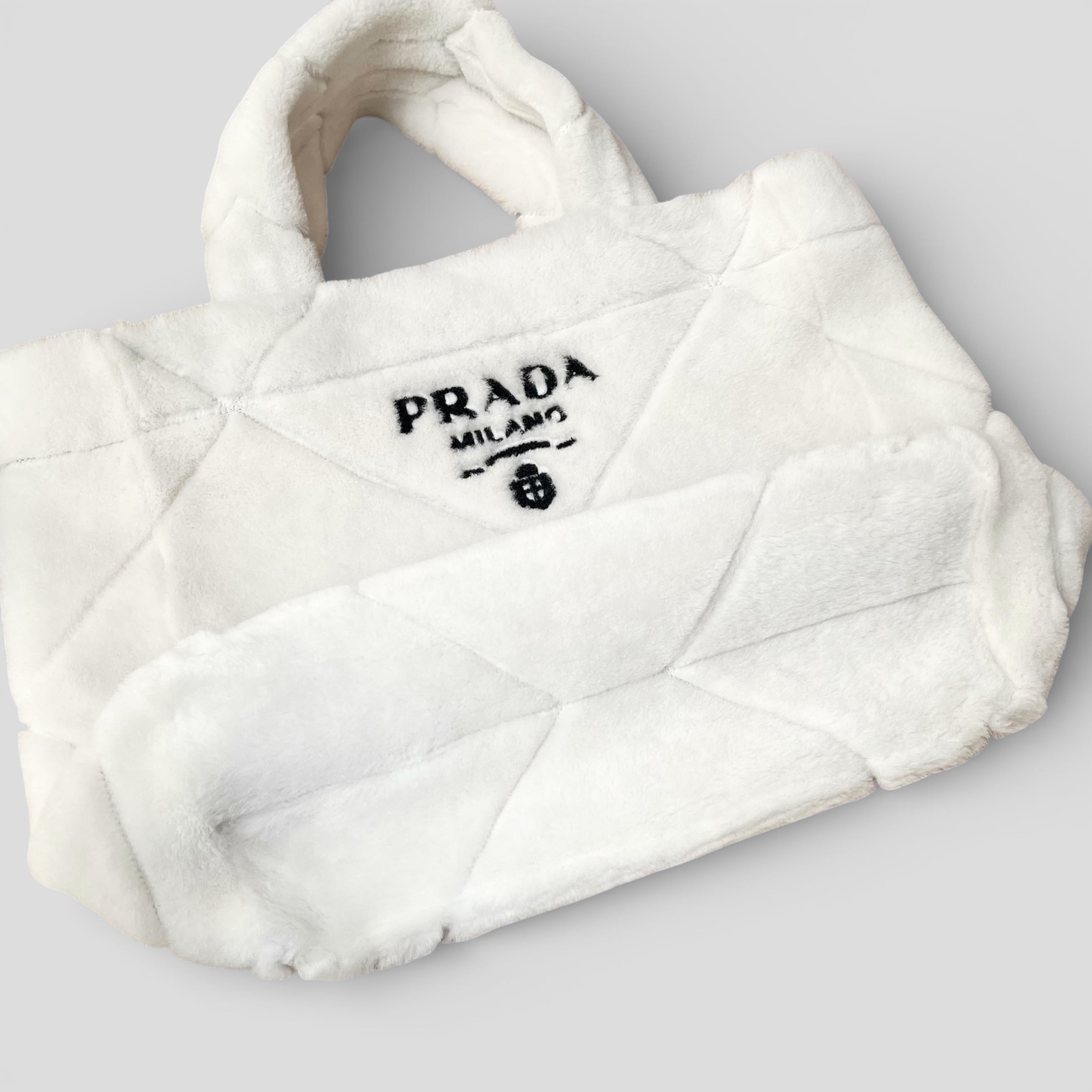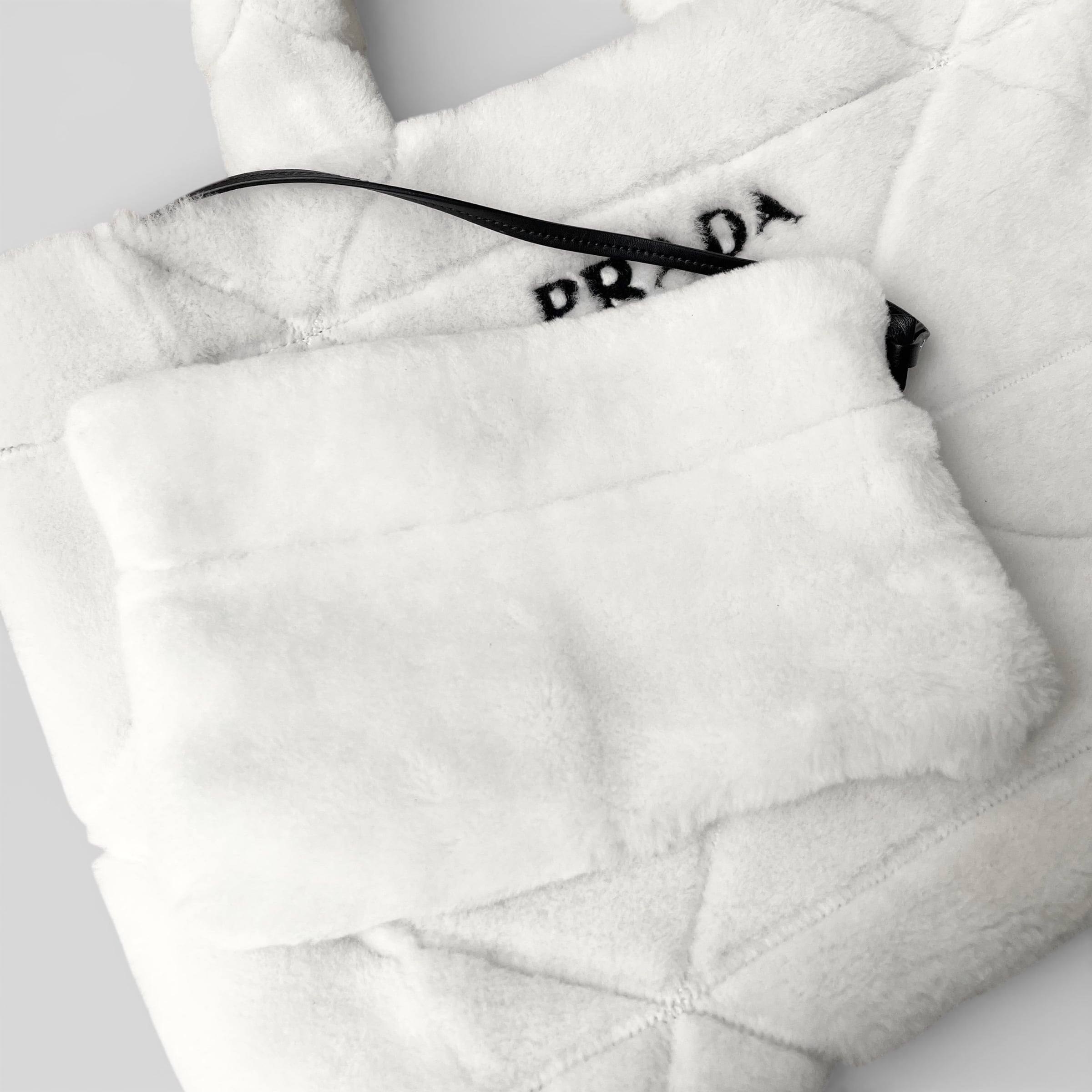 PRADA Quilted Shearling Tote Bag Dyed Sheep Fur White
