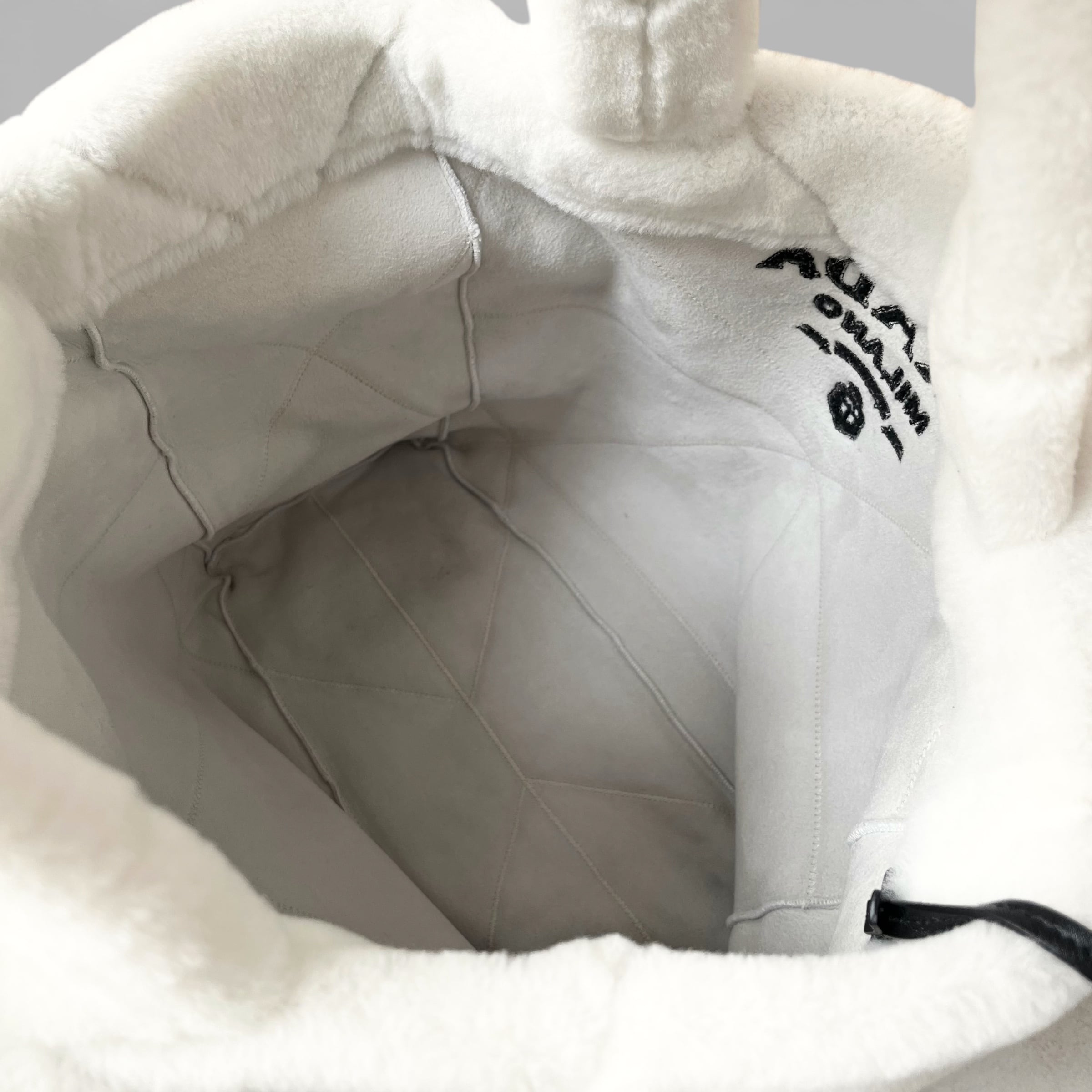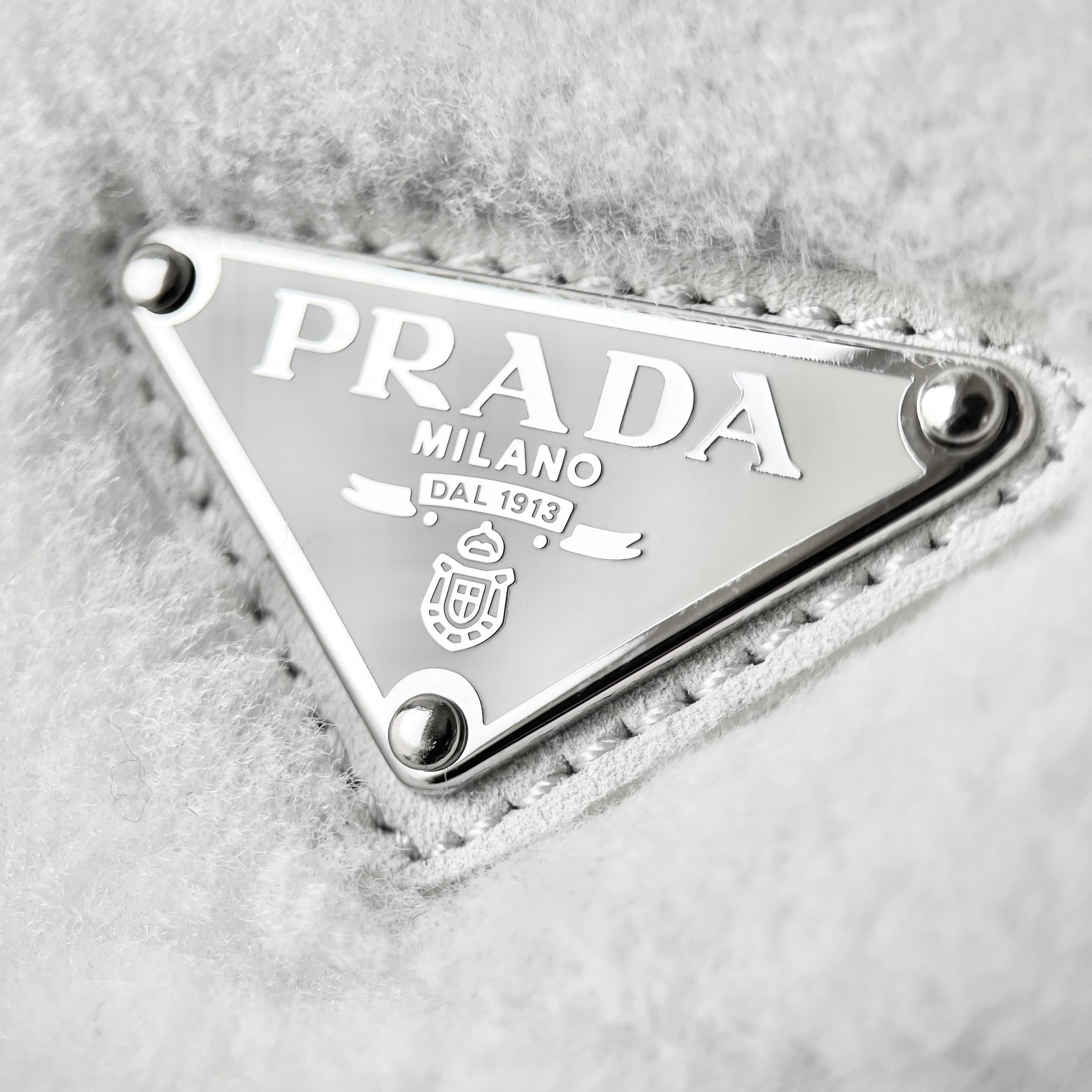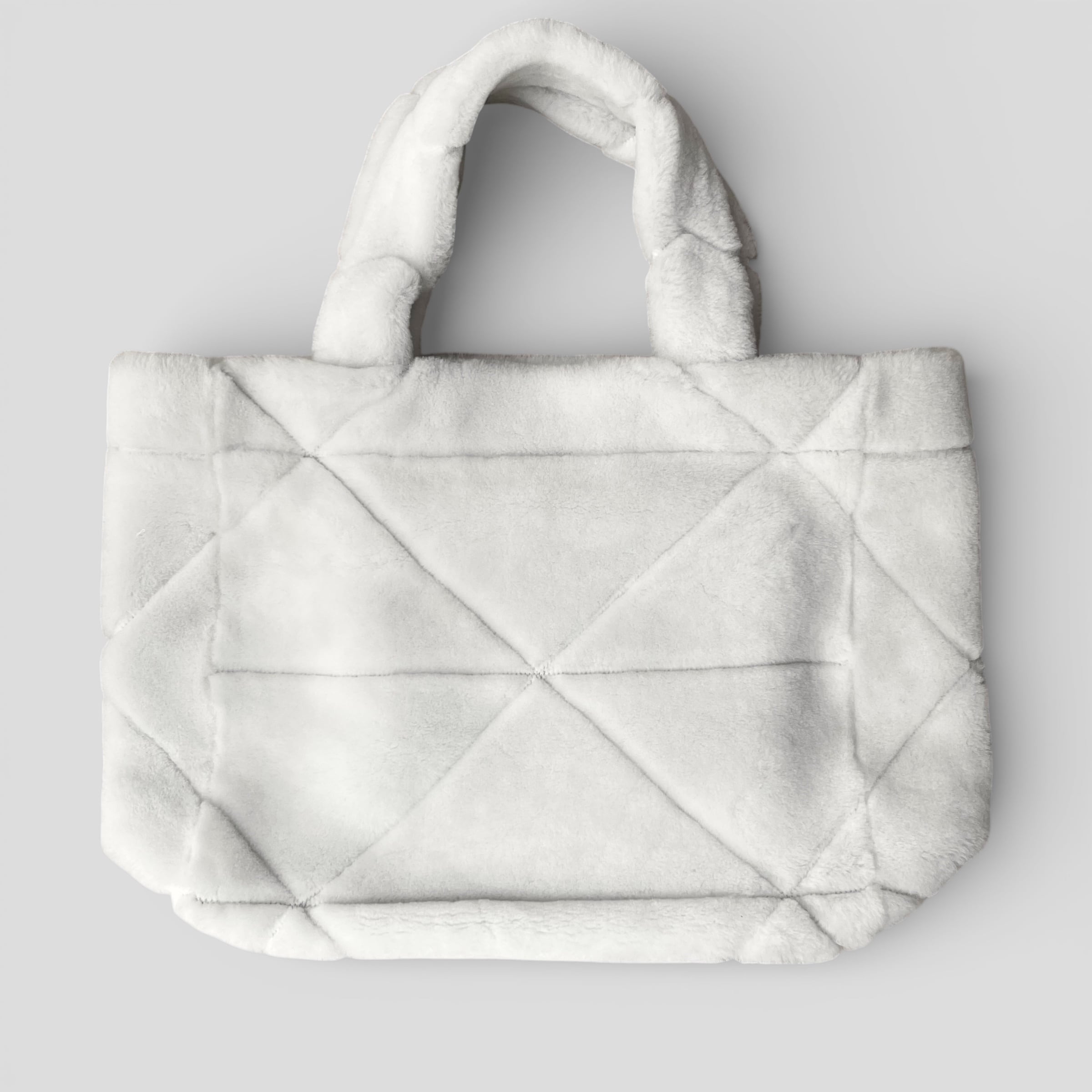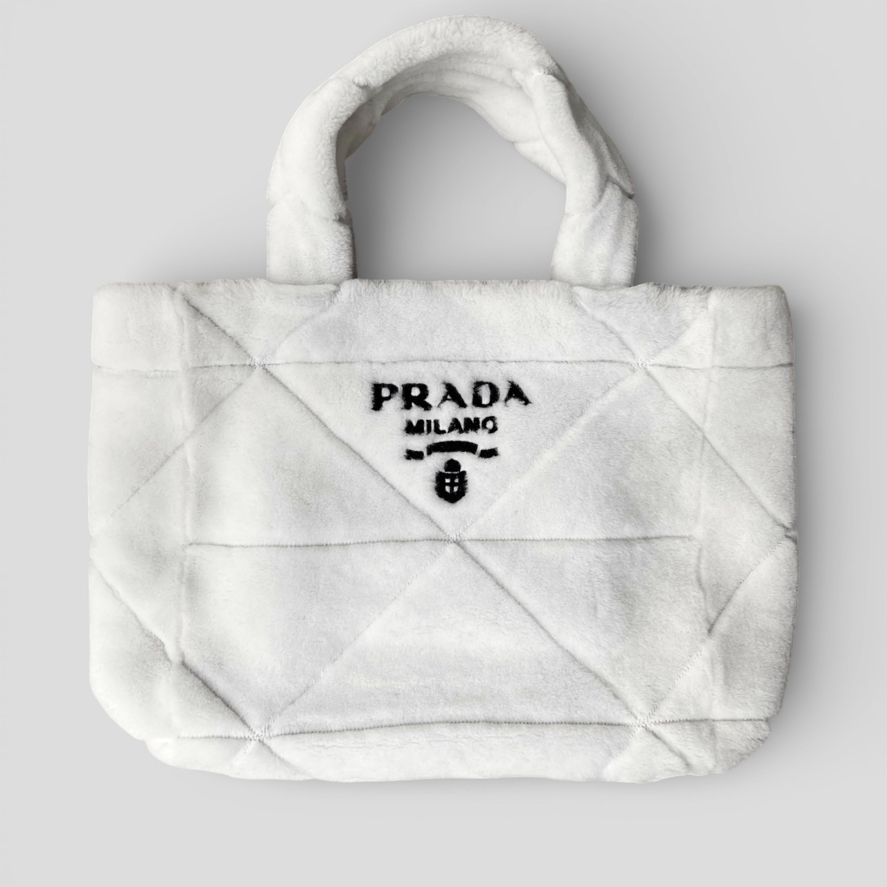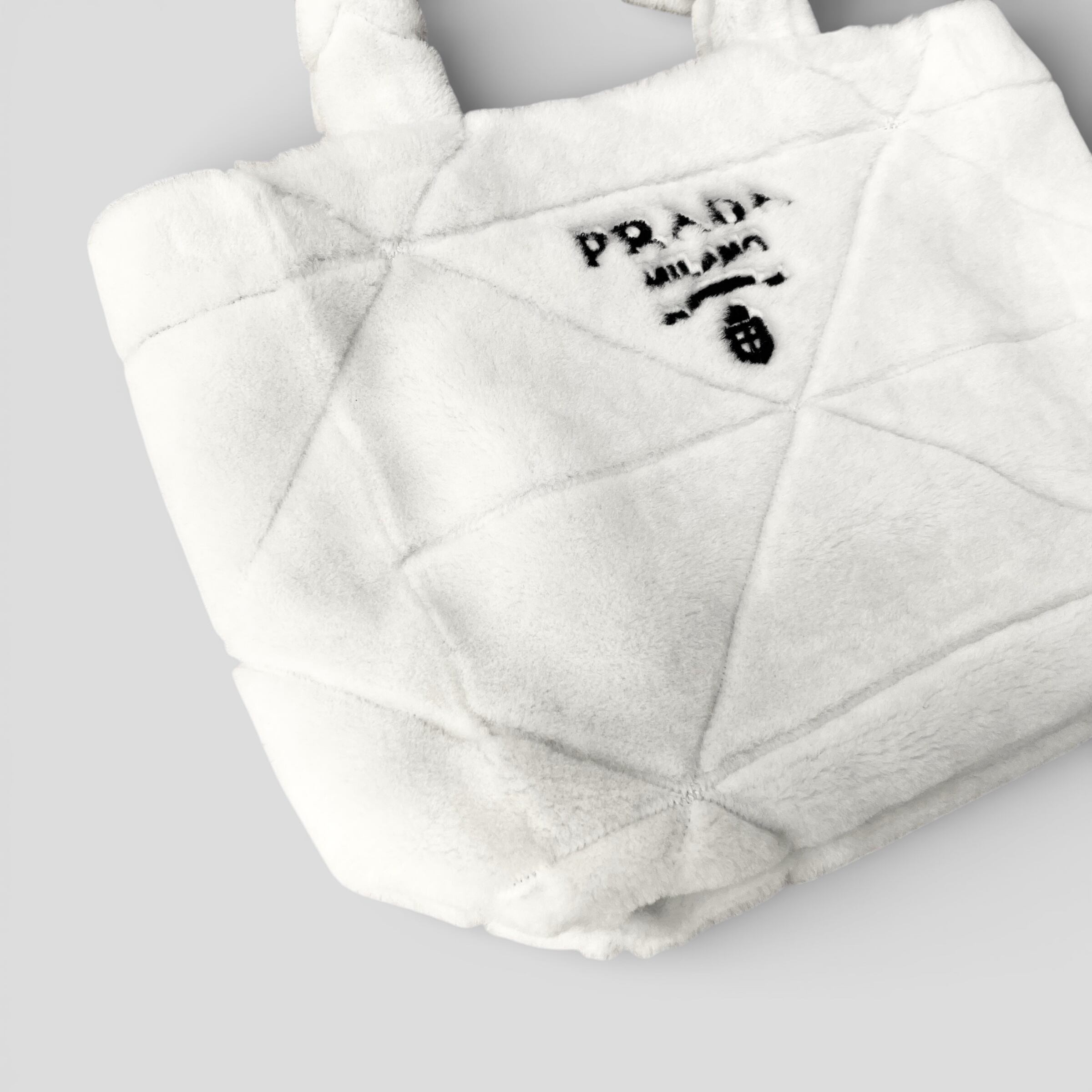 PRADA Quilted Shearling Tote Bag Dyed Sheep Fur White