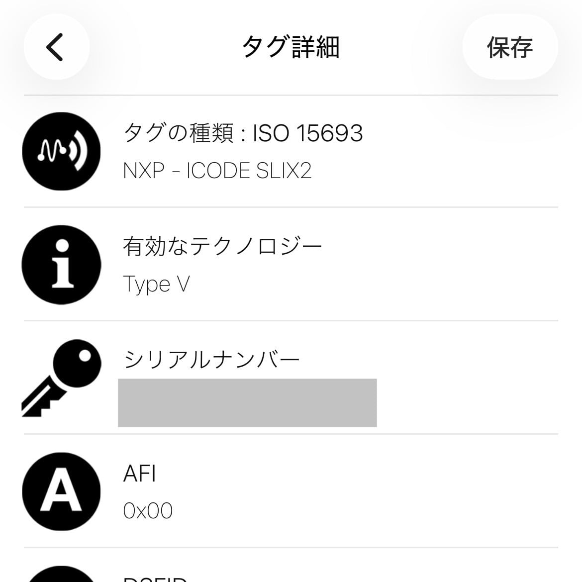 シリアル:RFIDチップ確認済み