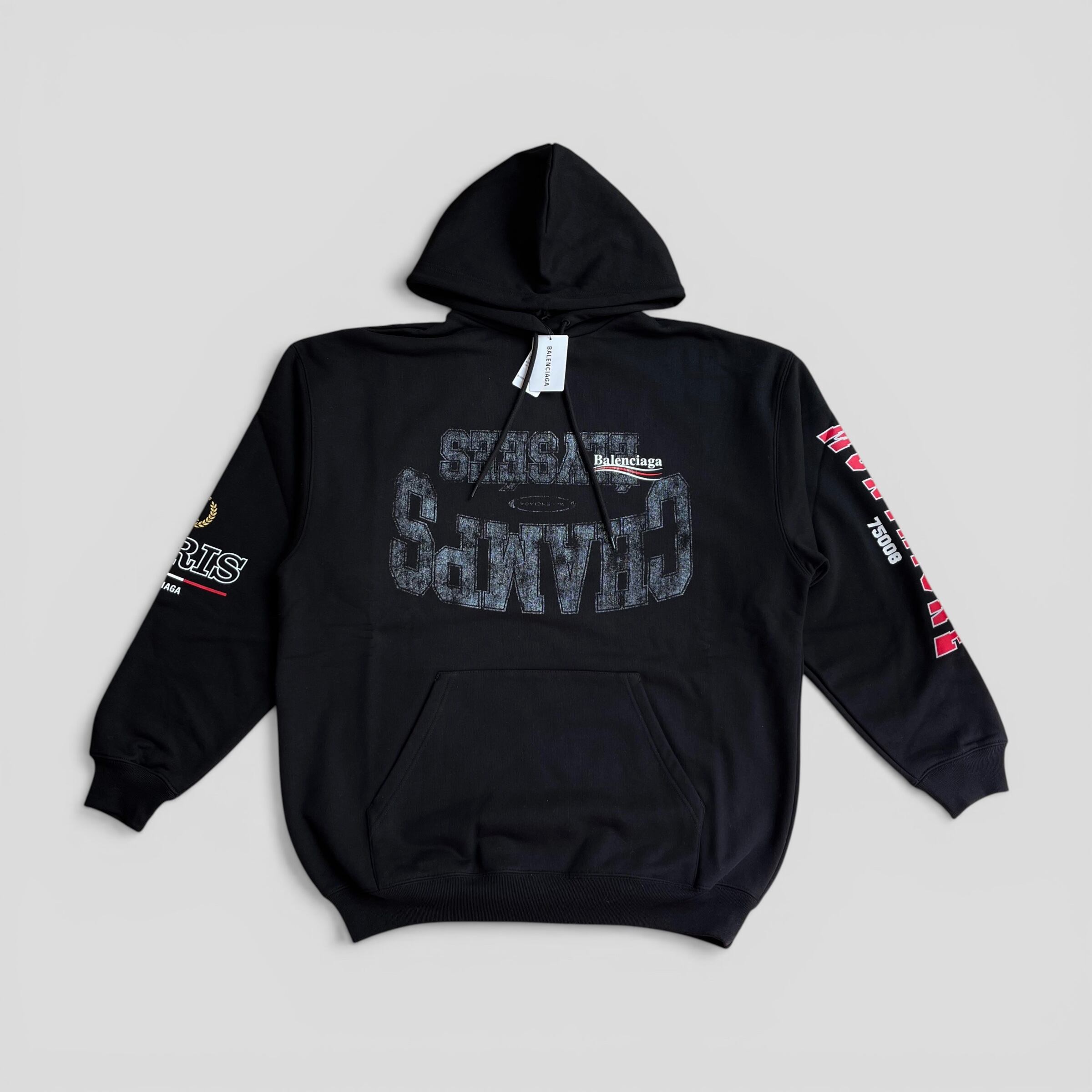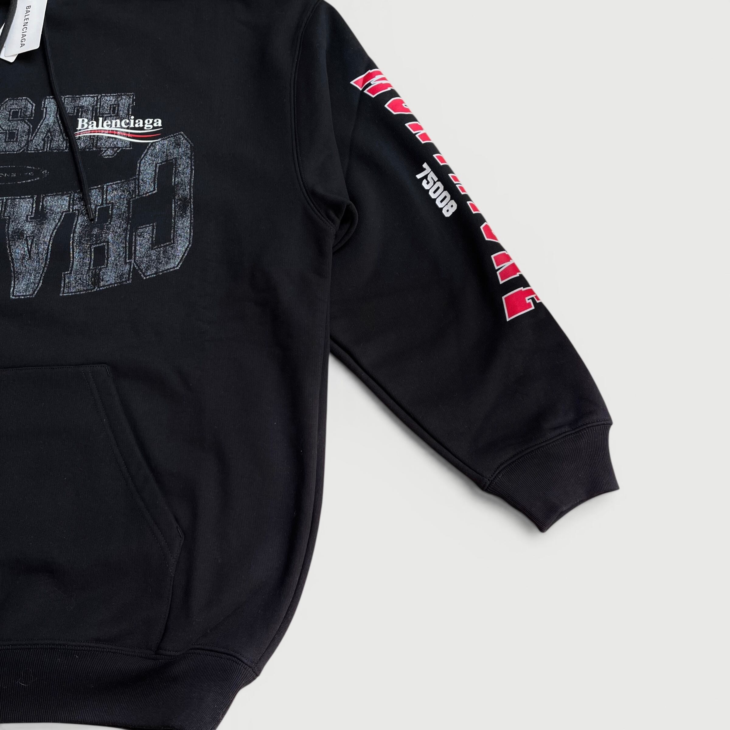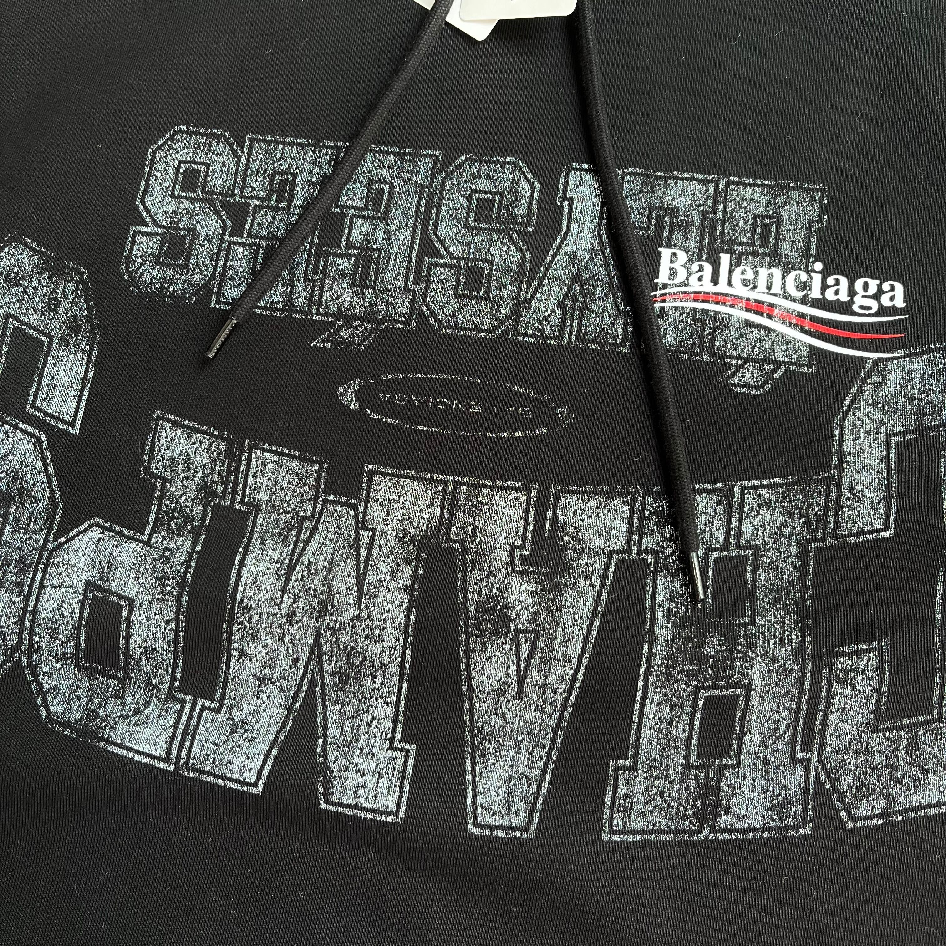 BALENCIAGA Medium Fit Hoodie Overlayer Political Campaign Black XS