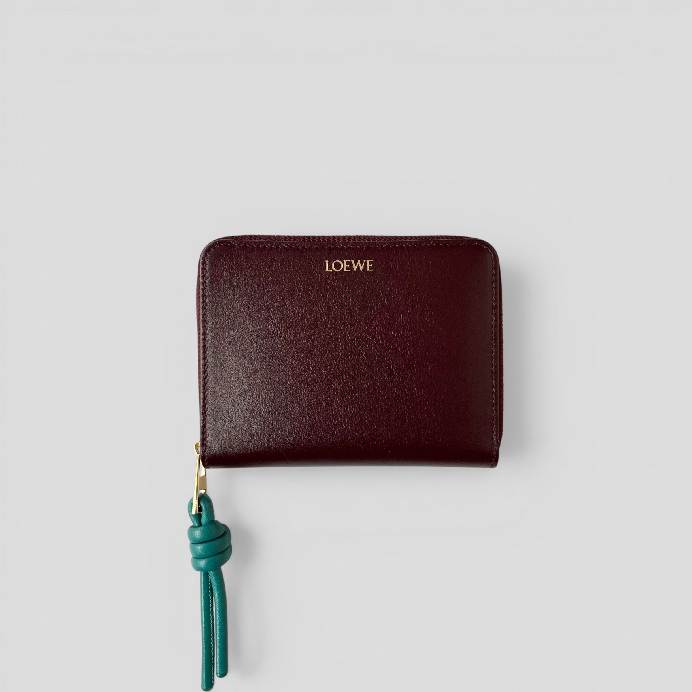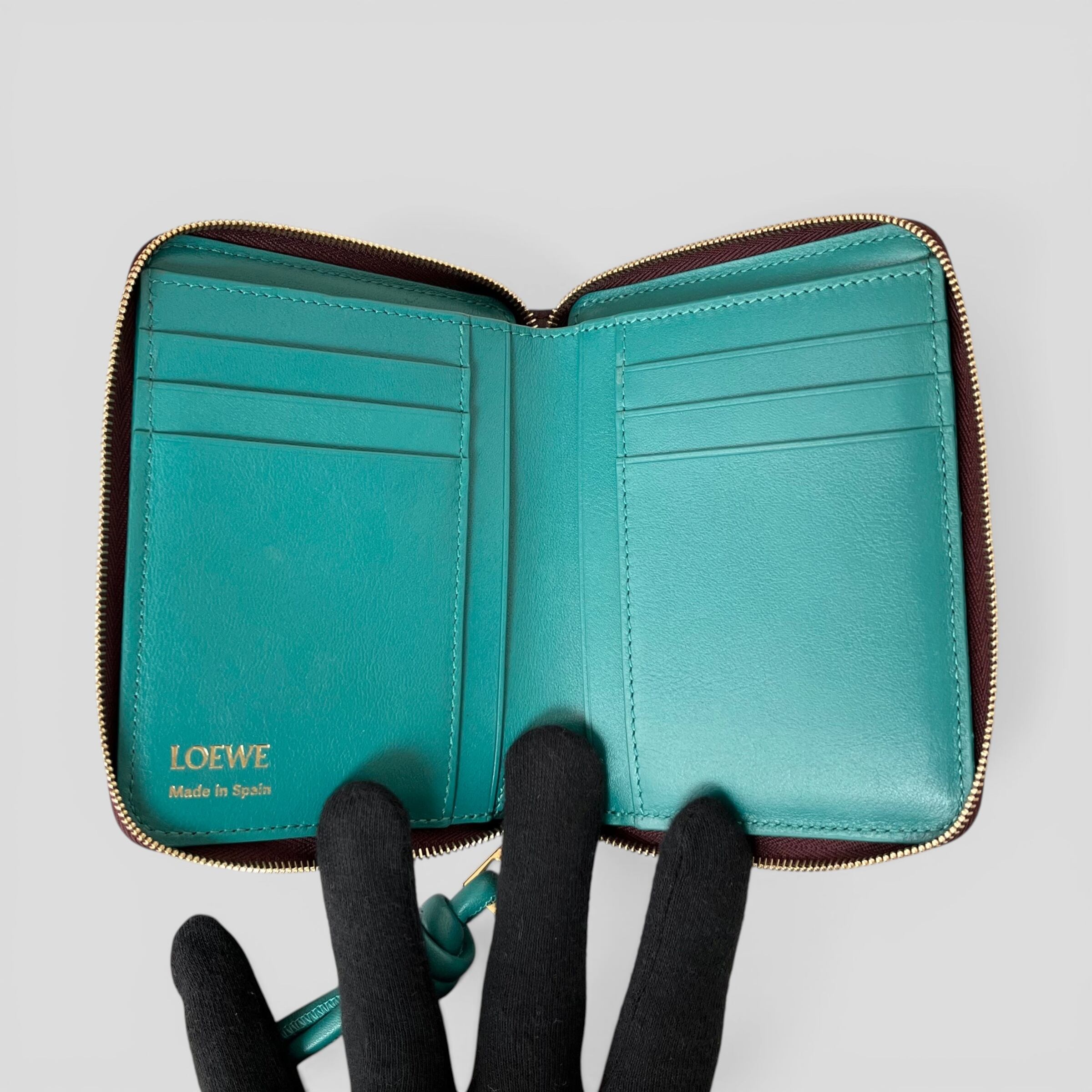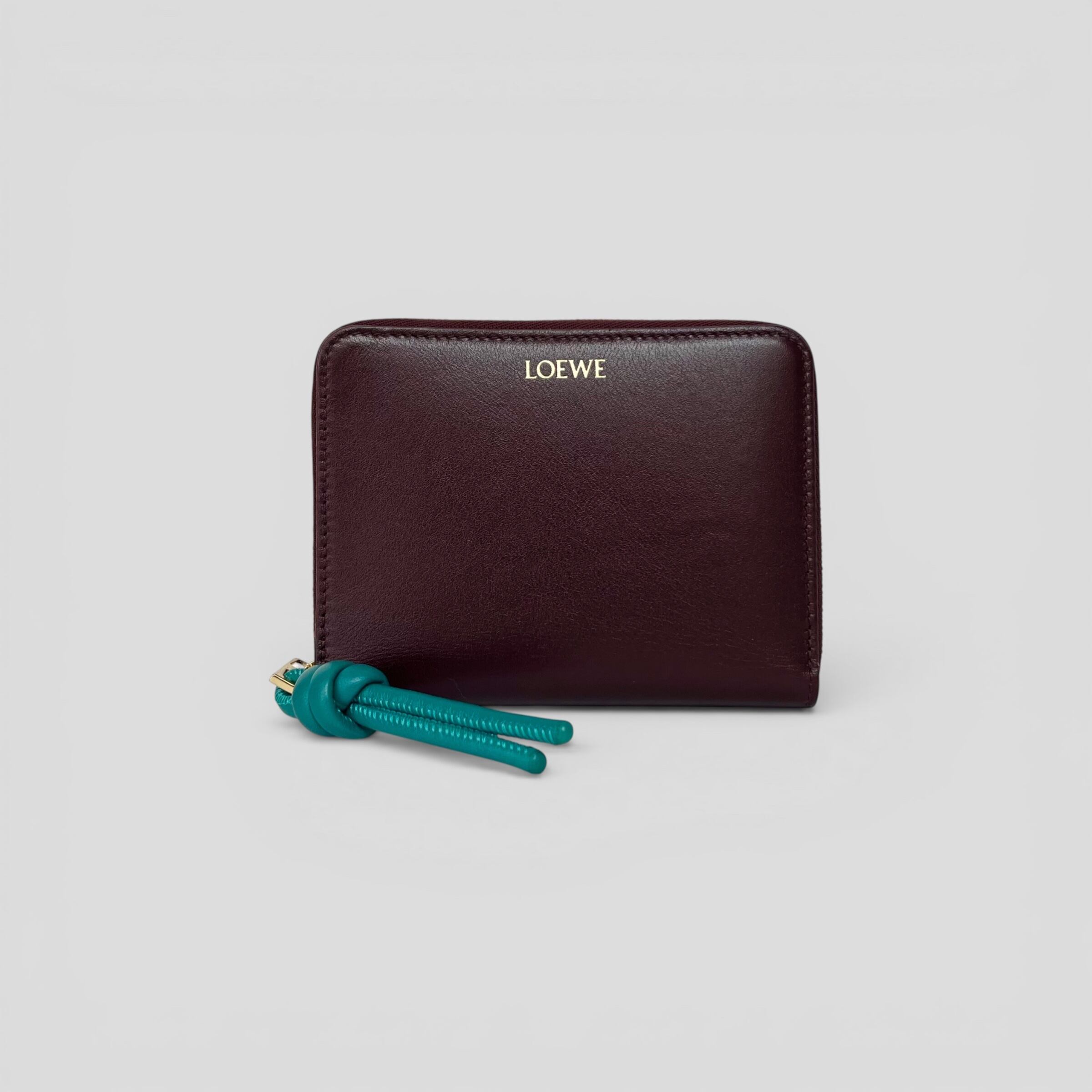 LOEWE Knot Compact Zip Around Wallet Burgundy