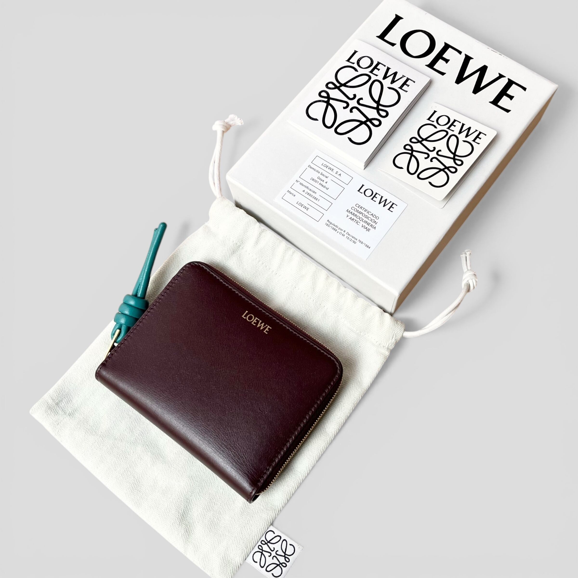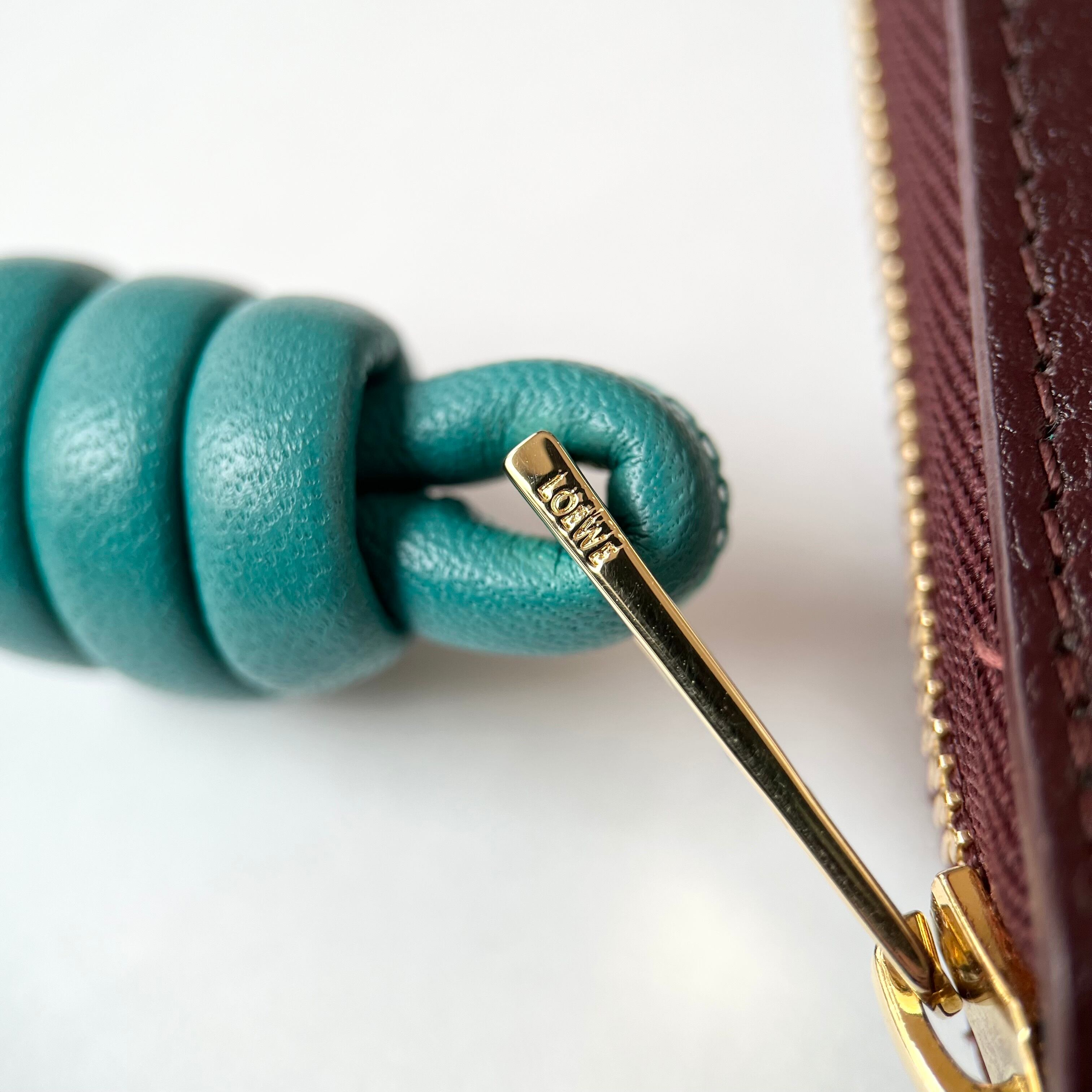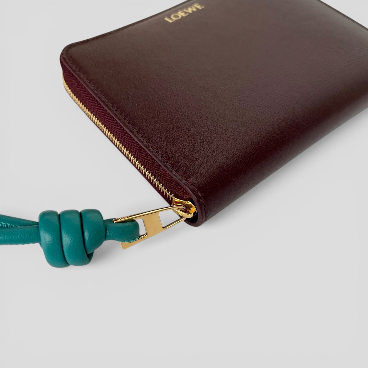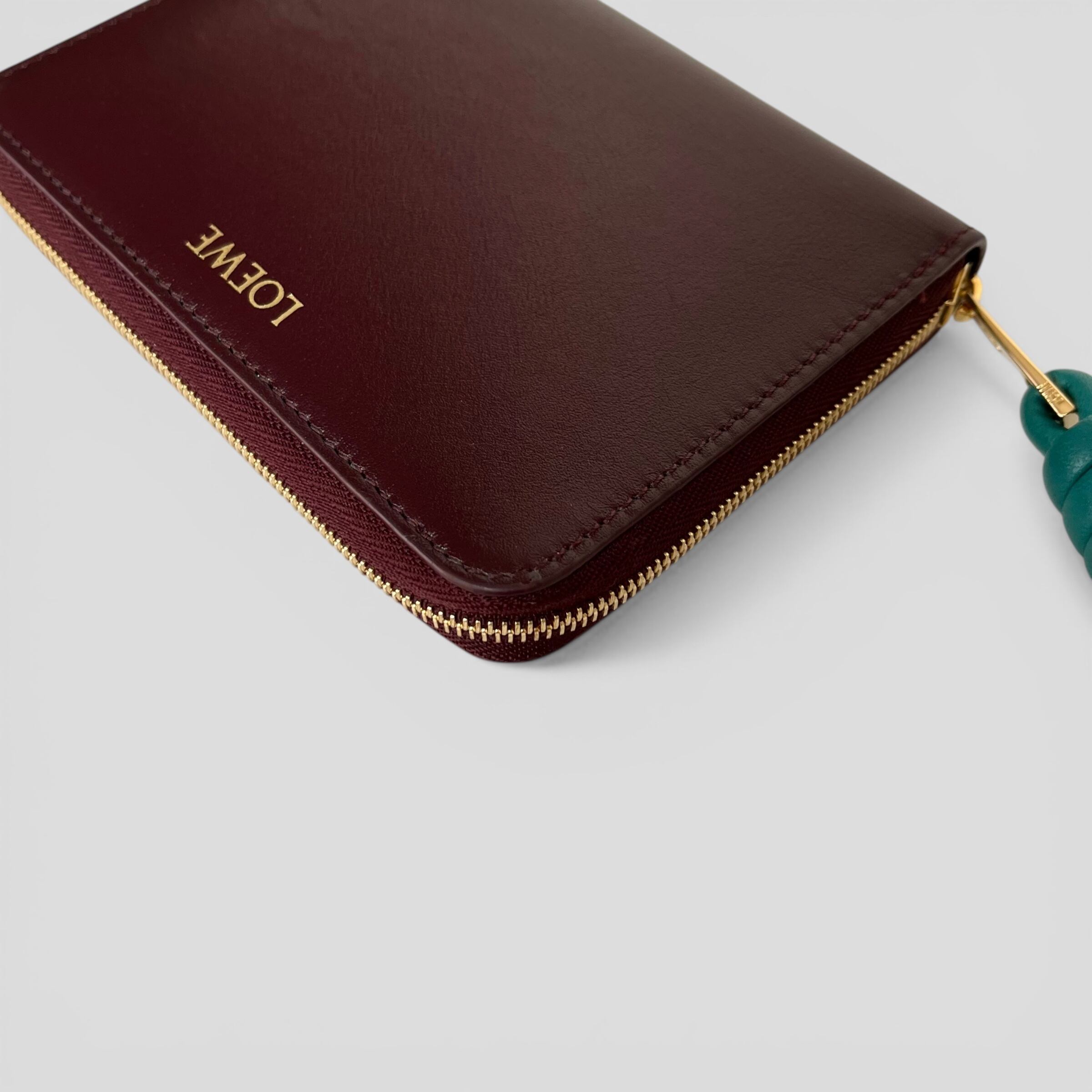 LOEWE Knot Compact Zip Around Wallet Burgundy