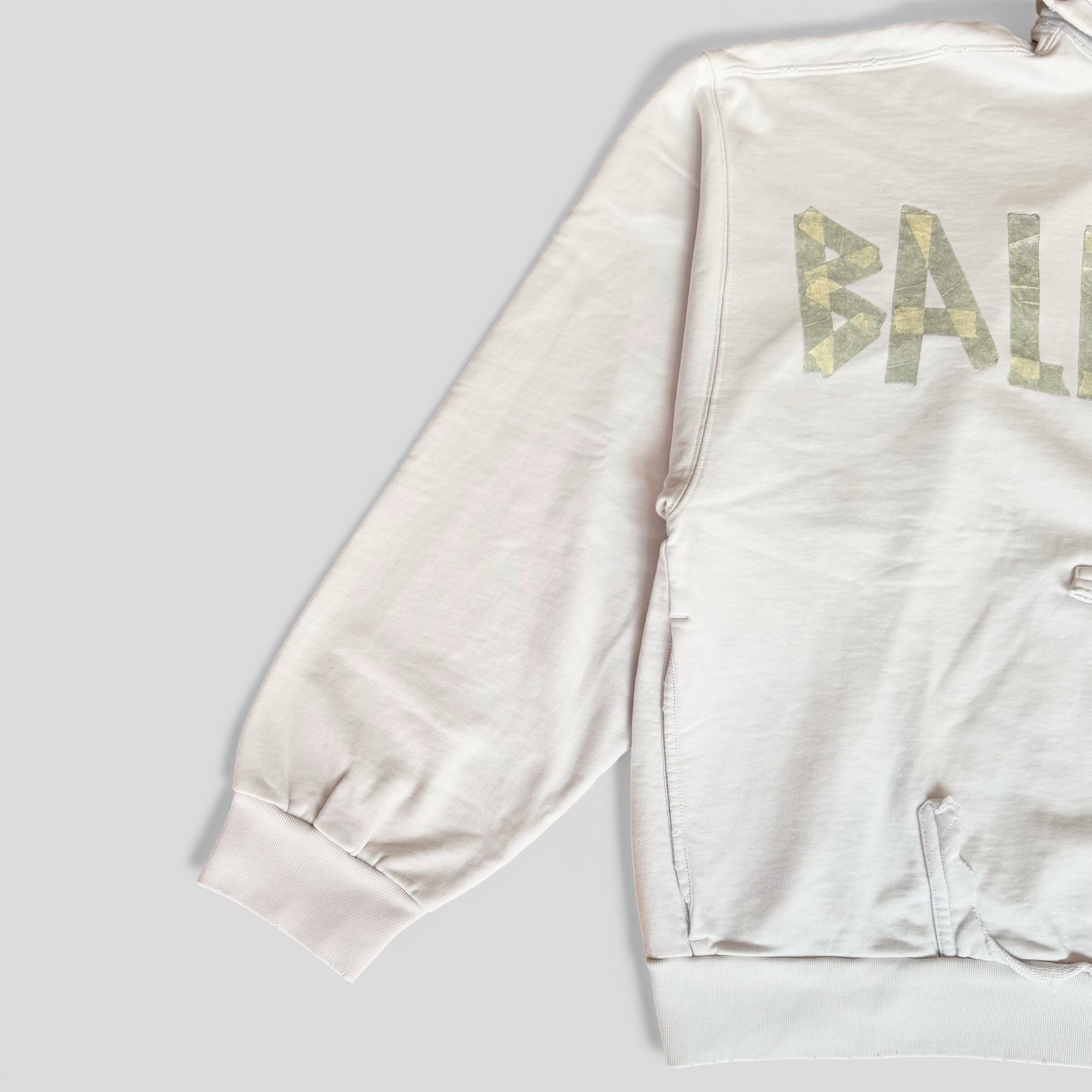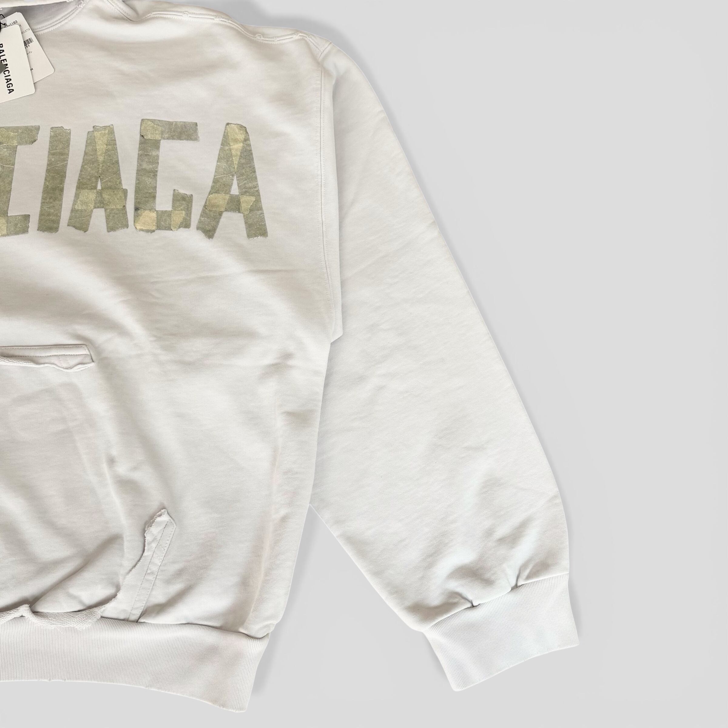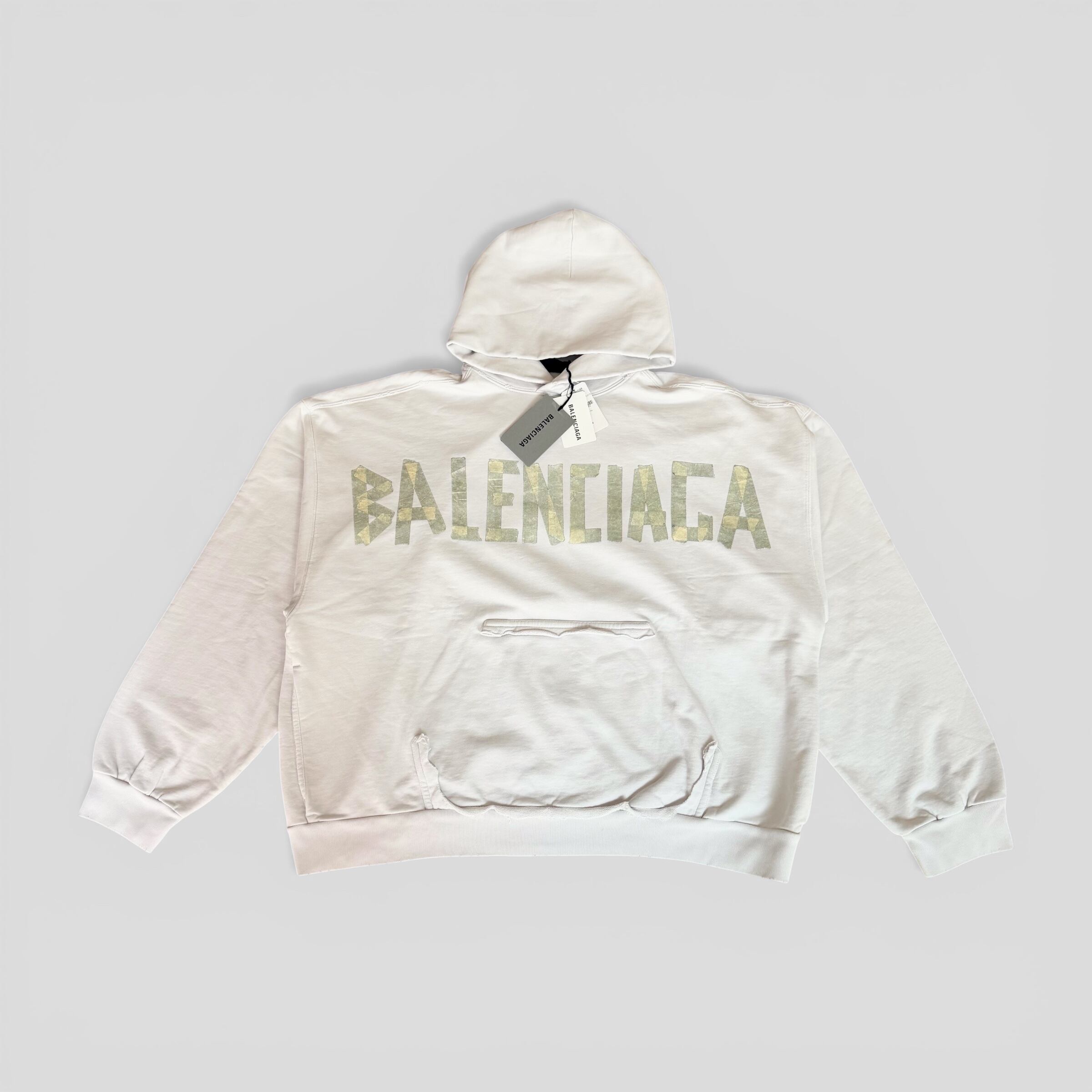 BALENCIAGA Tape Type Ripped Pocket Hoodie White M