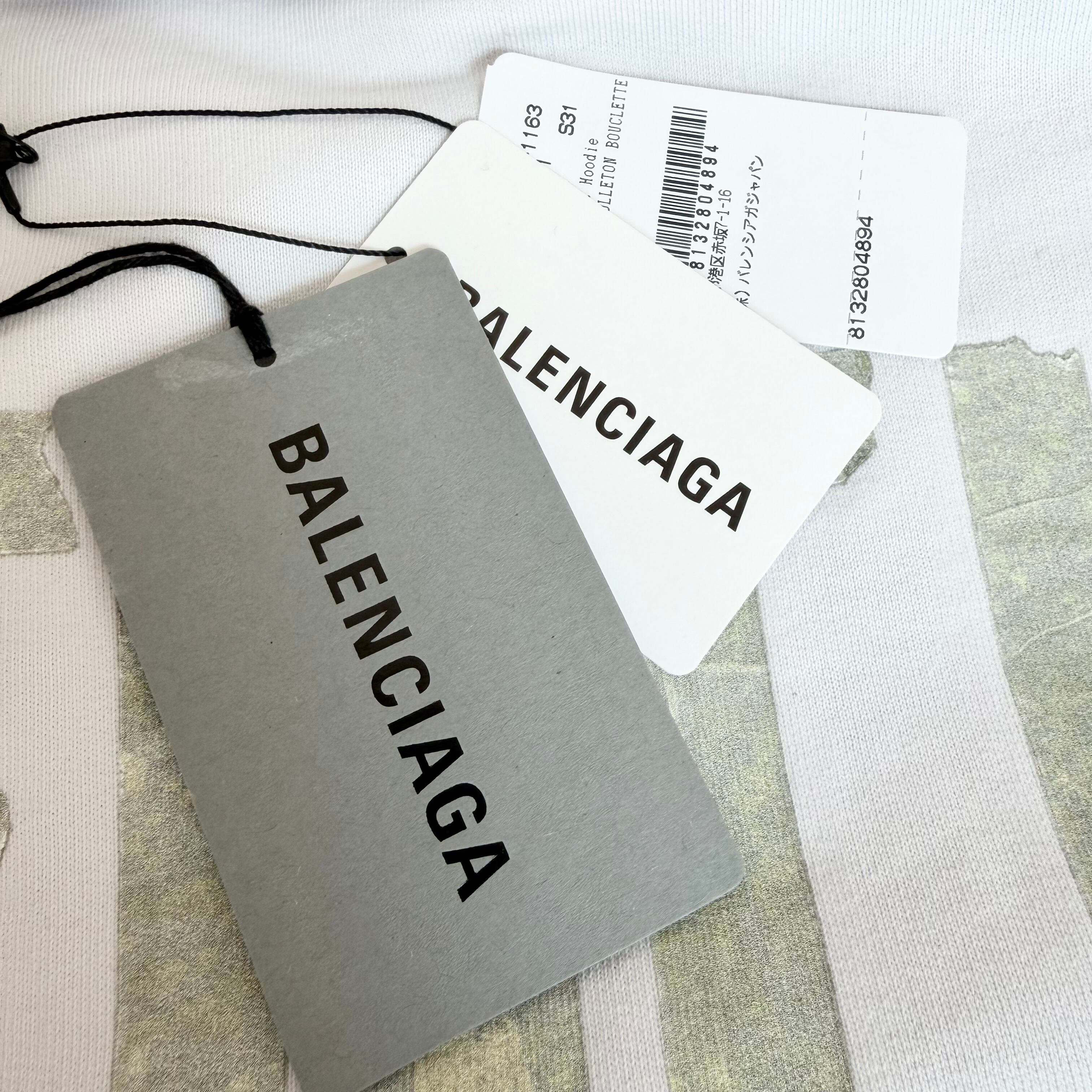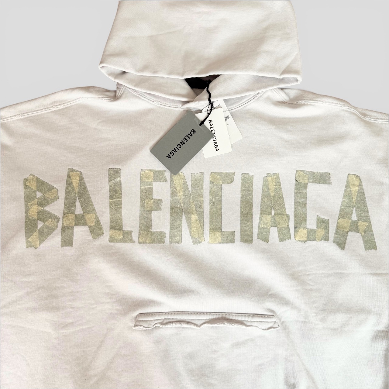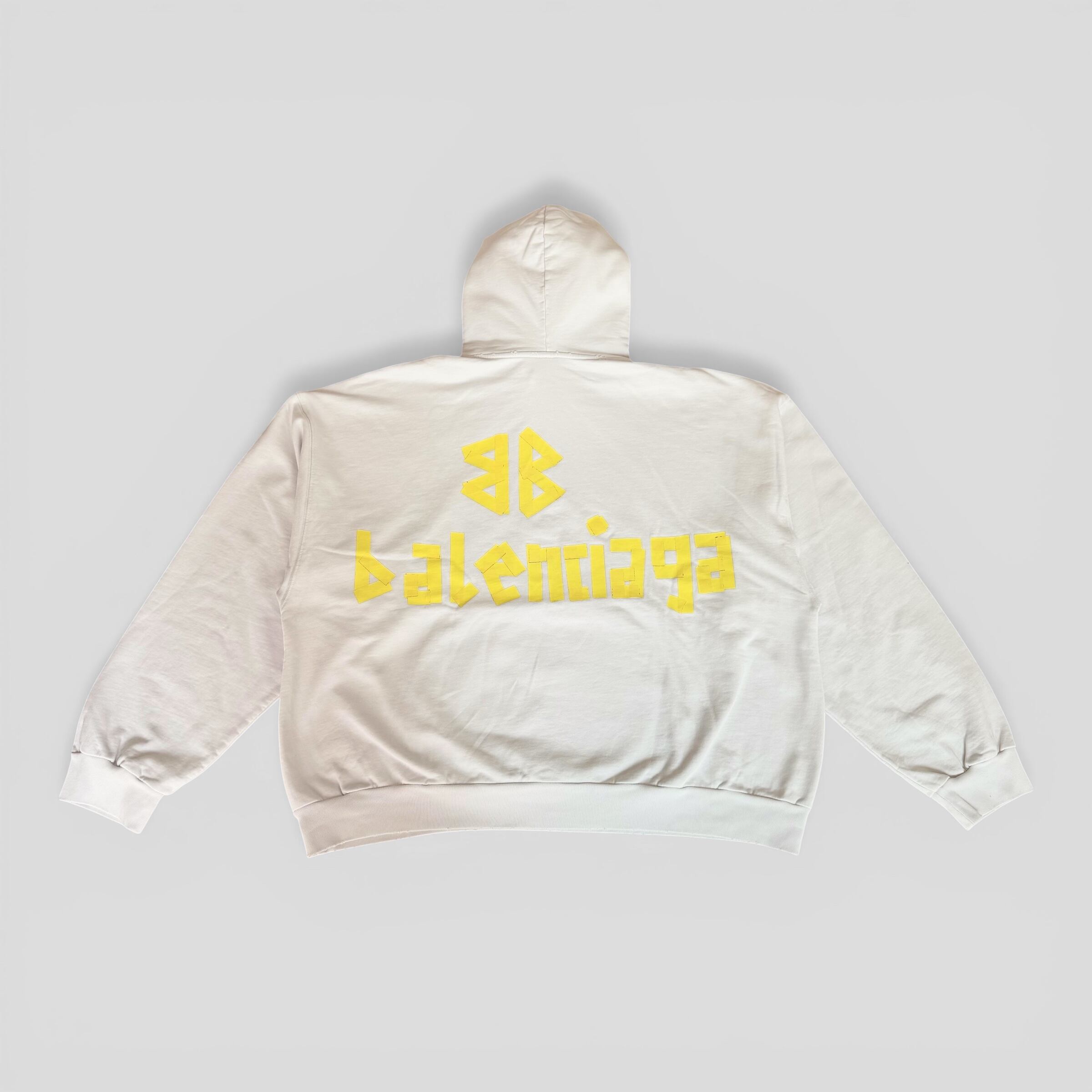 BALENCIAGA Tape Type Ripped Pocket Hoodie White M