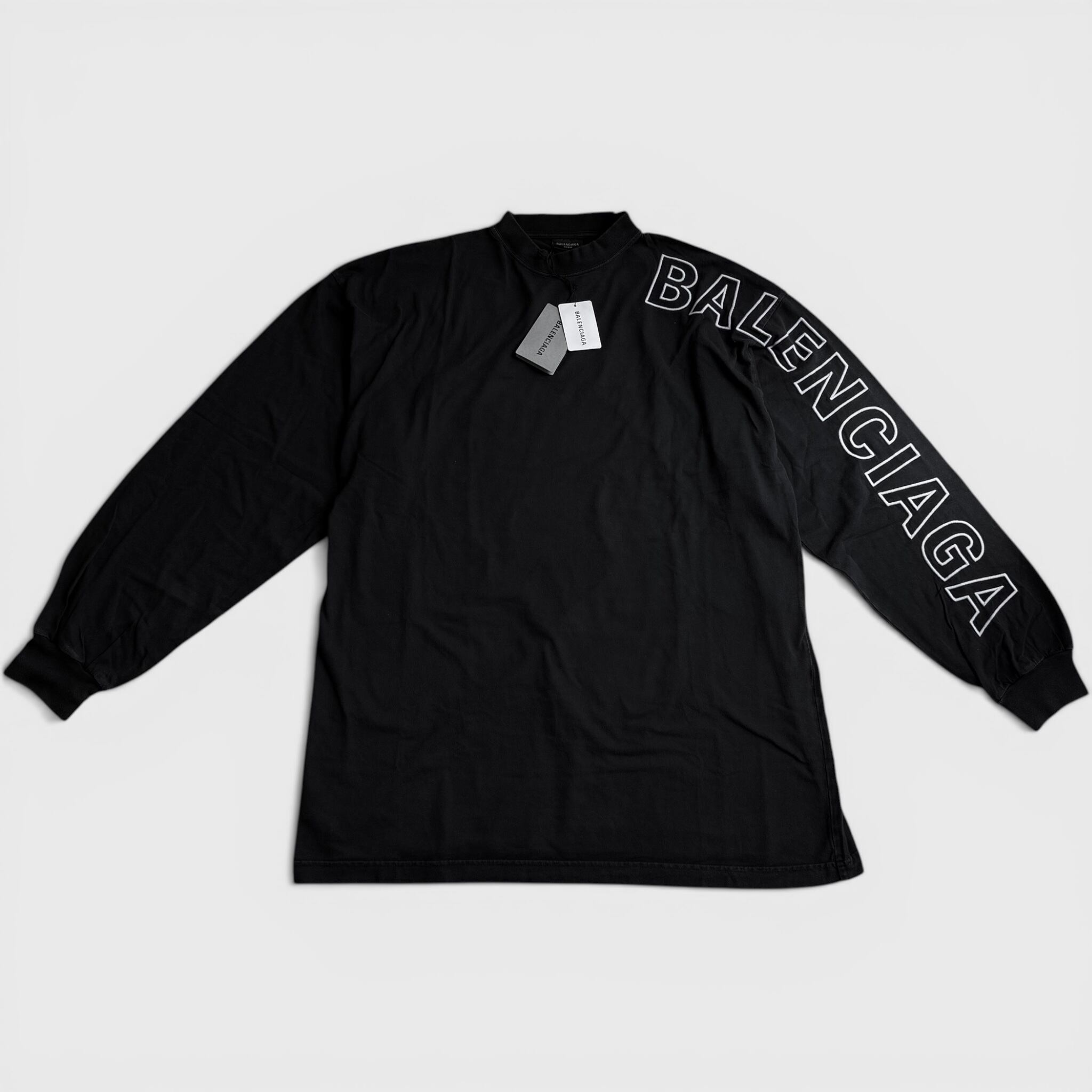 BALENCIAGA Outline Oversized Long Sleeve T-Shirt Washed Black 3