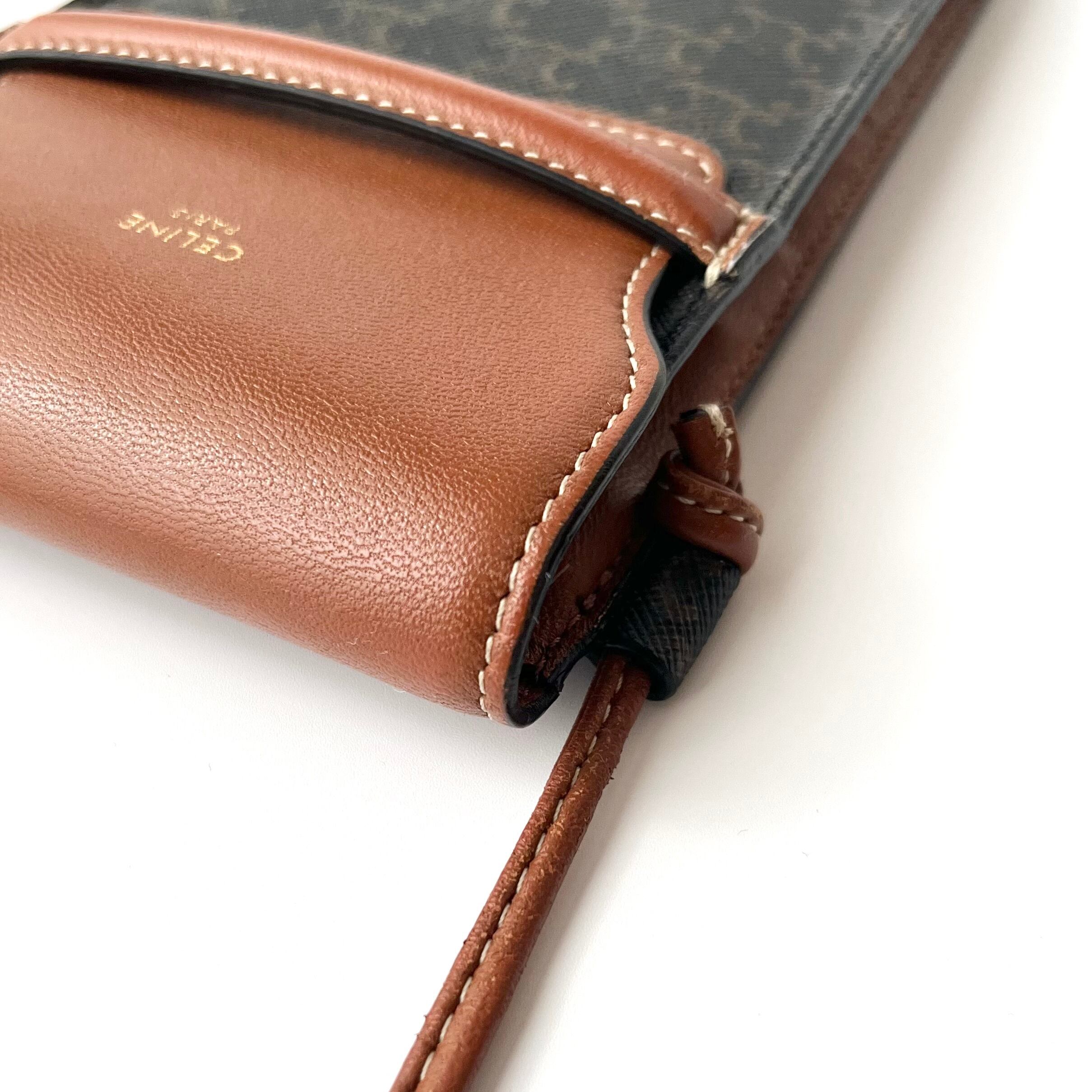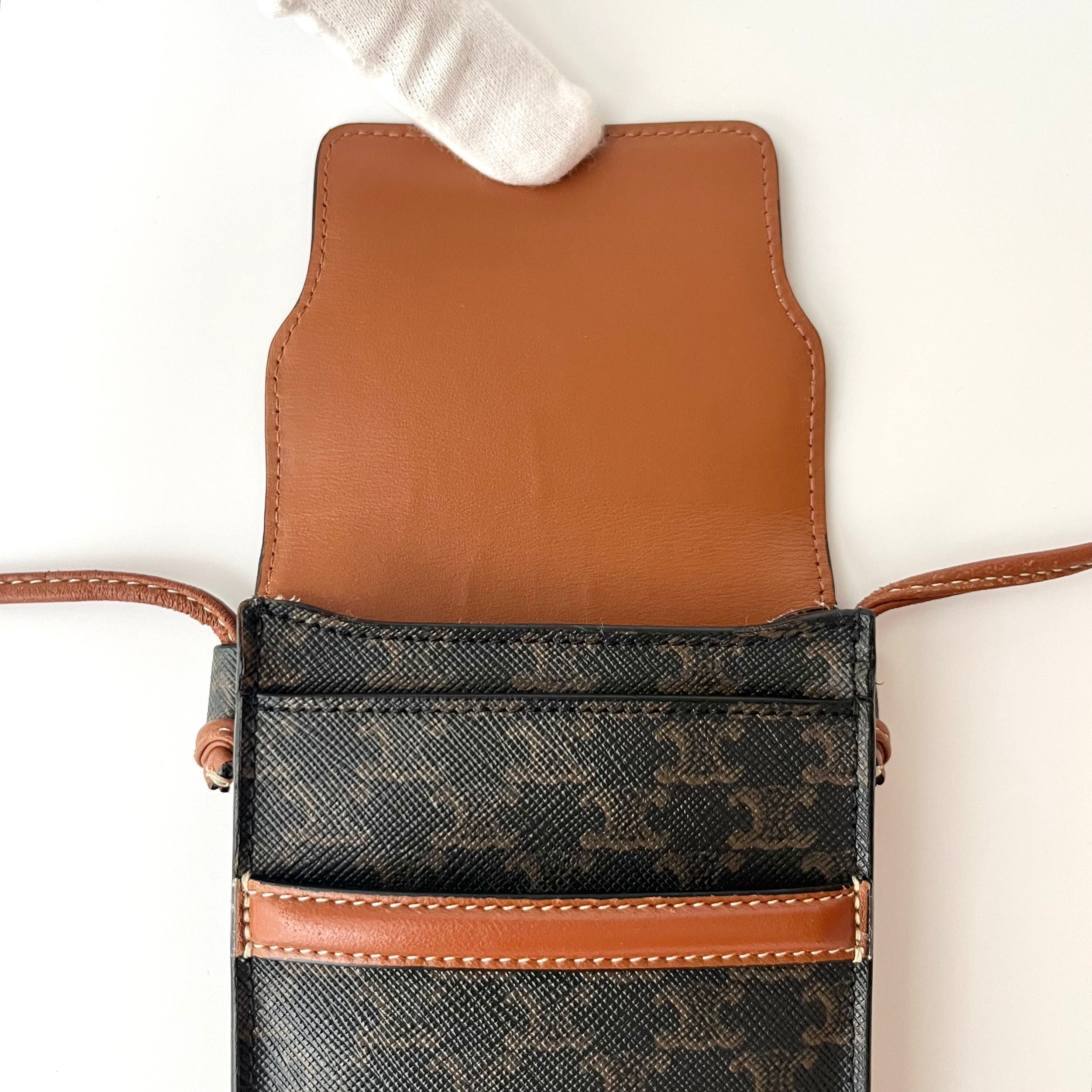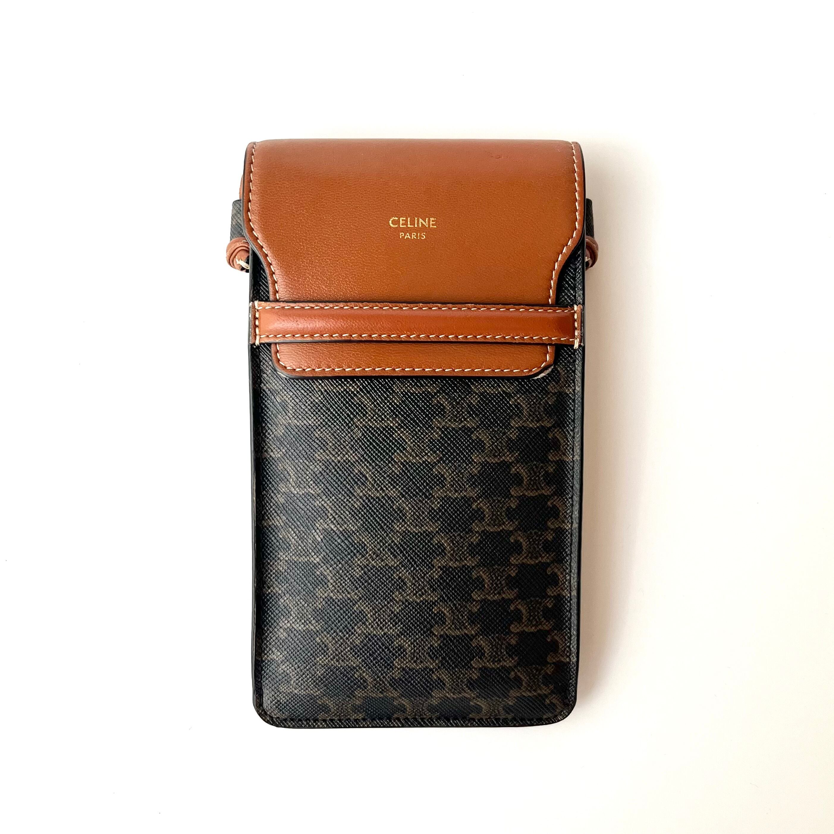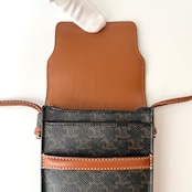 CELINE セリーヌ フラップ付きモバイルポーチ トリオンフキャンバス ラムスキン