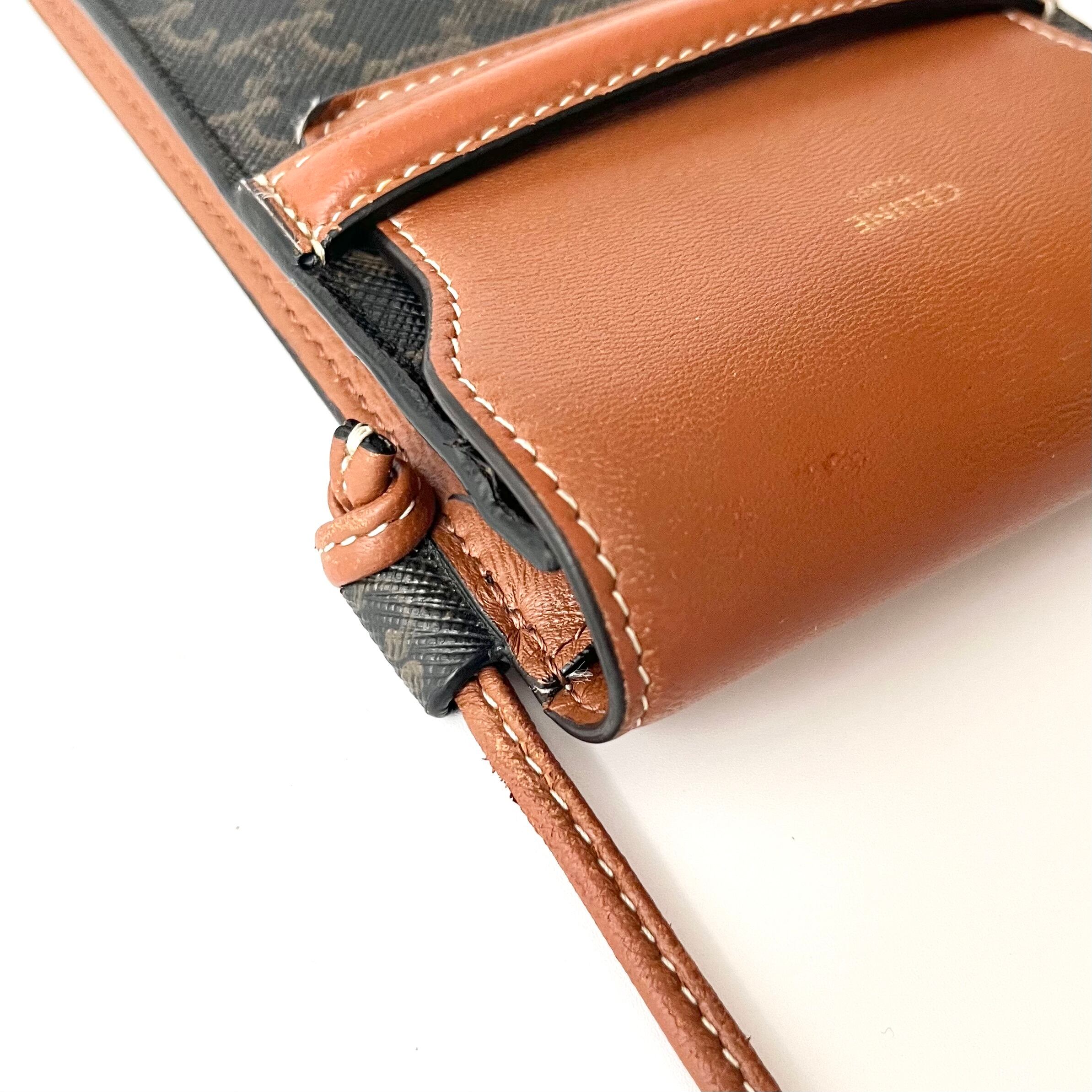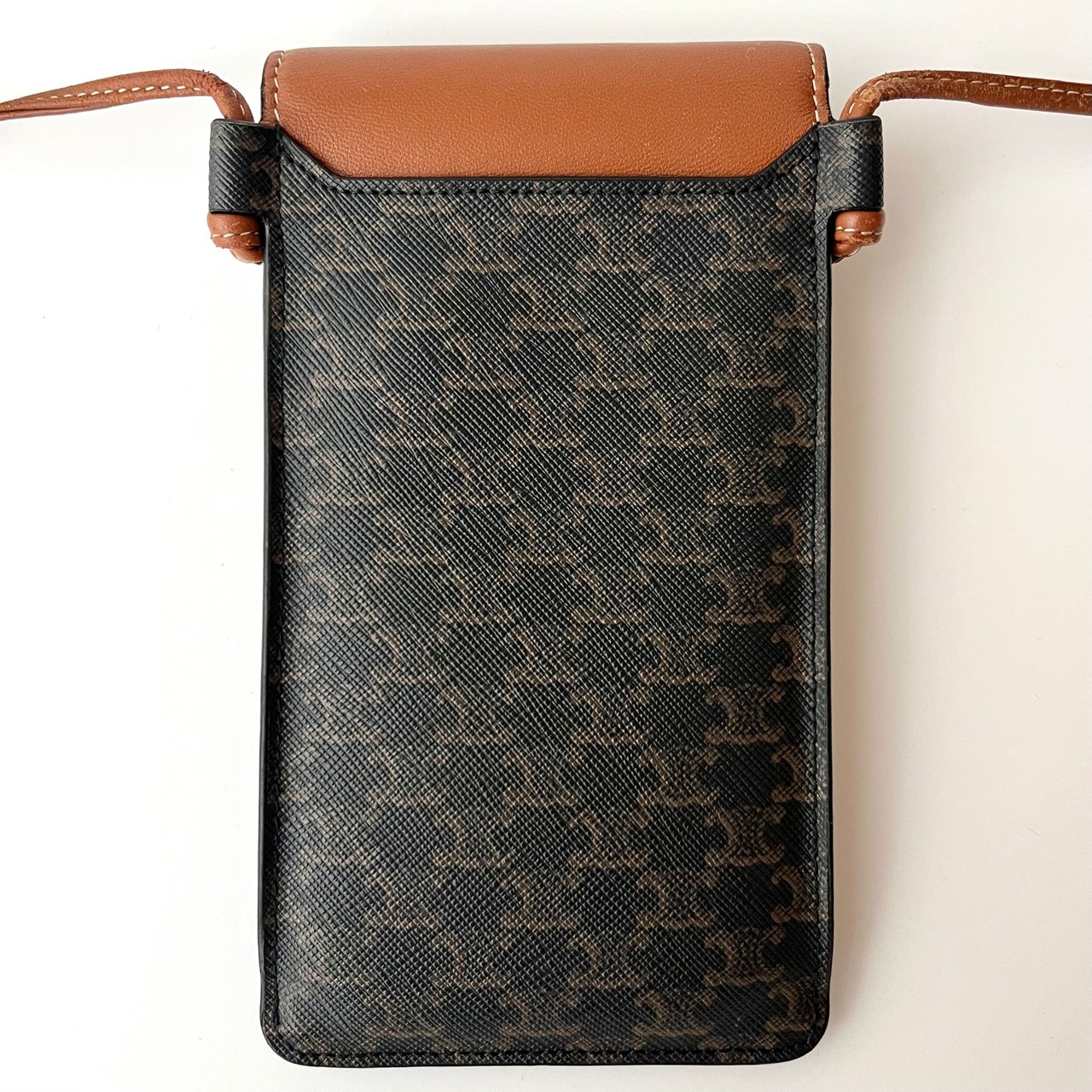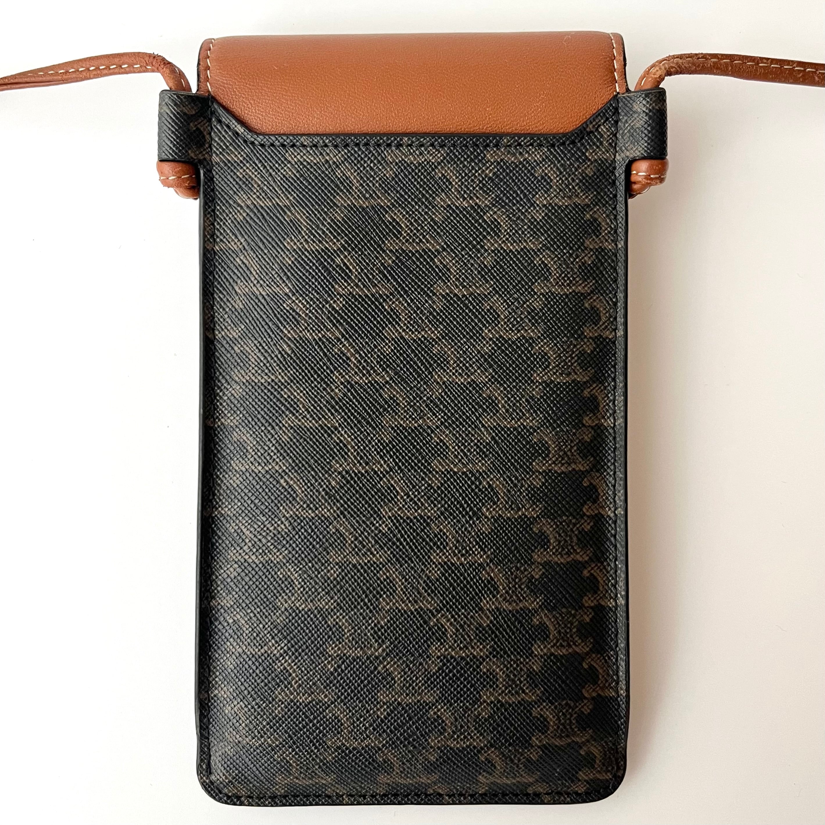 CELINE セリーヌ フラップ付きモバイルポーチ トリオンフキャンバス ラムスキン