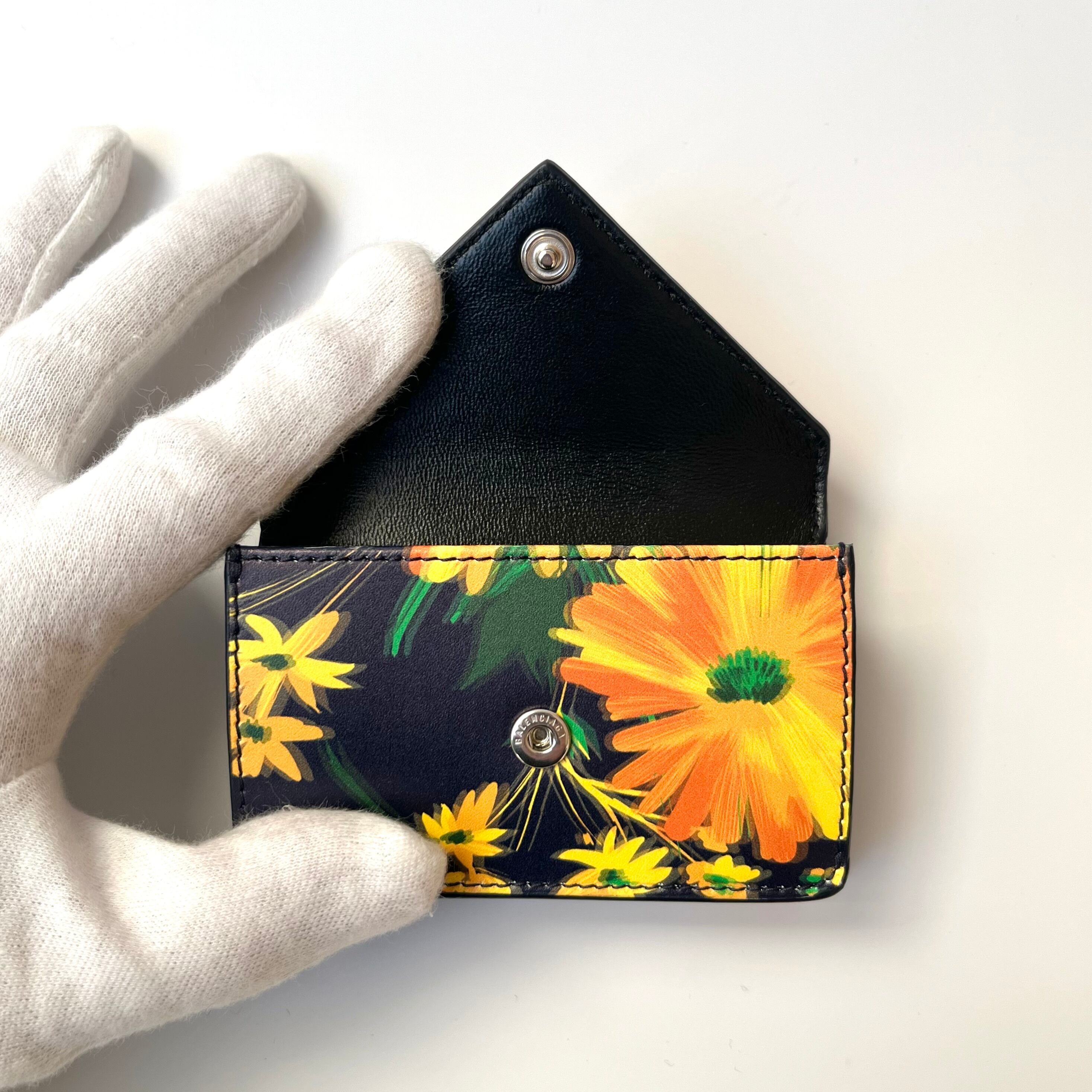 大人気のペーパーミニウォレットの中でも珍しい花柄のお品で、柄に個体差があり同じ配置はなく、世界にひとつのお財布としてご愛用いただけます。